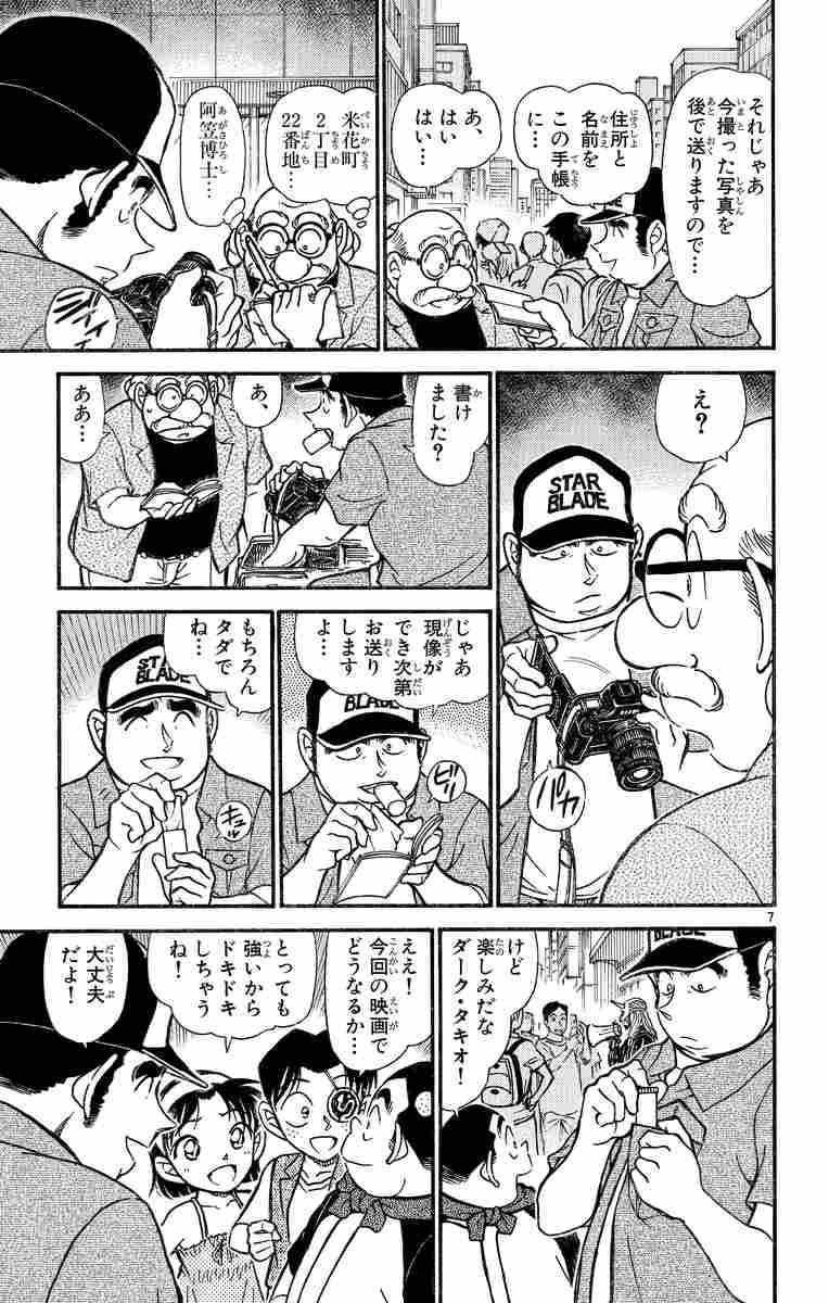▼第1話/挙動不審!?▼第2話/因縁の試写会▼第3話/式場パニック▼第4話/招かれざる客▼第5話/ウエディング・バトル▼第6話/常識はずれの部屋▼第7話/逆さまミステリー▼第8話/隠したかったもの▼第9話/園子の赤いハンカチ▼第10話/カタカナの名前▼第11話/スーパーマン●主な登場人物/江戸川コナン(見かけは小学生だが、その正体は「黒の組織」に薬を飲まされて幼児化した高校生名探偵・工藤新一)、毛利蘭(新一の幼なじみ。帝丹高校2年)、毛利小五郎(蘭の父親で探偵。コナンのおかげで“眠りの小五郎”として有名に)●あらすじ/映画「スターブレイド・」の試写会に訪れたコナンと少年探偵団、阿笠博士の面々。入口で元太たちが小道具の刀を振り回していると突然、フリーカメラマンの建井が話しかけてきた。彼は、自分のカメラでコナンたちの写真を撮ってあげると、それを送ると言って博士の住所をメモに取り、フィルムと一緒に胸ポケットへしまいこむ。その直後、建井は携帯電話で友人から呼び出され、博士に荷物を預けて去っていくが…(第1話)。●本巻の特徴/強盗殺人犯に命を狙われたカップルの替え玉として、高木刑事が花婿役に扮することに! 結婚式場をめぐる難事件(第3~5話)や、愛猫がカギを握るゴースト作家殺人事件(第6~9話)など全4エピソードを収録。●その他の登場人物/小嶋元太・吉田歩美・円谷光彦(コナンの同級生。少年探偵団を結成)、灰原哀(新一を幼児化させた薬の考案者だが、自らも幼児化して「黒の組織」から逃亡。阿笠の家に居候中)、阿笠博士(工藤家の隣りに住む科学者。新一とコナンが同一人物だと知っている)、佐藤美和子(警視庁捜査一課の刑事。同僚男性のアイドル的存在)、高木渉(警視庁捜査一課の刑事。佐藤刑事と交際中)、鈴木園子(鈴木財閥の令嬢。蘭とは大親友)
