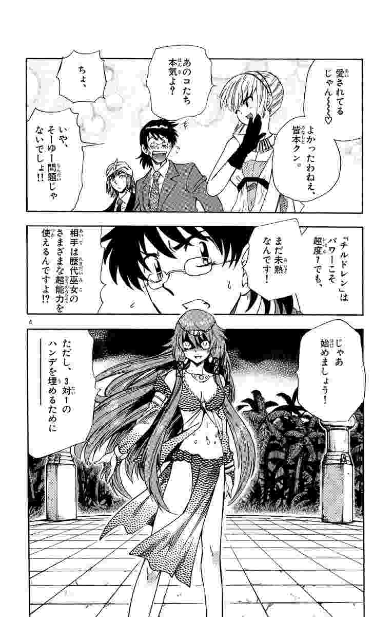 ●あらすじ/インパラヘン王国皇太子・パトゥラは、巫女のサラとの結婚を望むが、王族と巫女は結婚できないのがしきたり。だが納得のいかないチルドレンは、自由恋愛を認めさせるべく、しきたりを守ろうとする先代巫女・マサラと決闘することに! 3対1の闘いではあるが、マサラも超度7のエスパーである上、歴代巫女のさまざまな超能力を使える強敵で…(第1話)。
