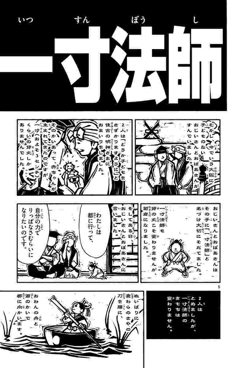 ▼第2条【一寸法師】/[2]追いかけて来たヒトはえらく怒ってはる/[3]一寸法師、誰からも評判わろし/[4]一寸法師と姫/[5]一寸法師と月光、しかられる/[6]一寸法師、ハラを決める/[7]一寸法師に月光、負け犬かときく/[8]一寸法師はうちでの小槌になにを願うか▼第3条【居場所】▼第4条【シンデレラ】/[1]シンデレラ登場/[2]高木天道