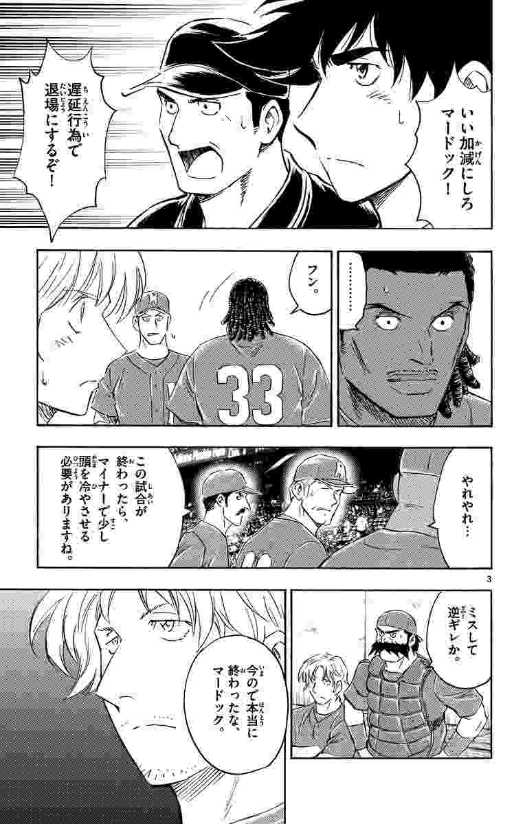 ●あらすじ/吾郎が完全復活したホーネッツは、チームもまた25年ぶりのリーグ優勝へ向けて快進撃。だがそこに問題選手のマードッグが加入し、たび重なる試合中のトラブルにより勢いが止まってしまう。チームの士気も下がる中、先発した吾郎は諦めない気持ちで剛球を連発。だが、この試合でもマードックは微妙な送球をしたチームメイト相手に怒りをぶつけ、それを一喝した吾郎にも殴りかかろうとして…!?(第1話)
