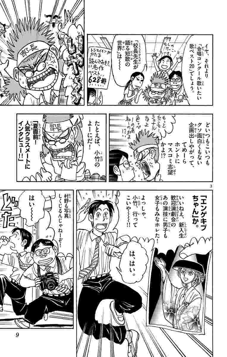 ●あらすじ/ある日、新聞部の「夏直前!人気クラスメートにインタビュー!!」という企画で、インタビューを受けることになったエンゲキブ。本人は全然意識していないが、エンゲキブに憧れを抱く男子は多く、取材しに来た新聞部員・小竹もそのひとり。取材を通して、ますます彼女の魅力に引き込まれていく小竹だったが、そんなエンゲキブがなぜ超不良の月光を気にするのか理解できなくて…?(第14条)