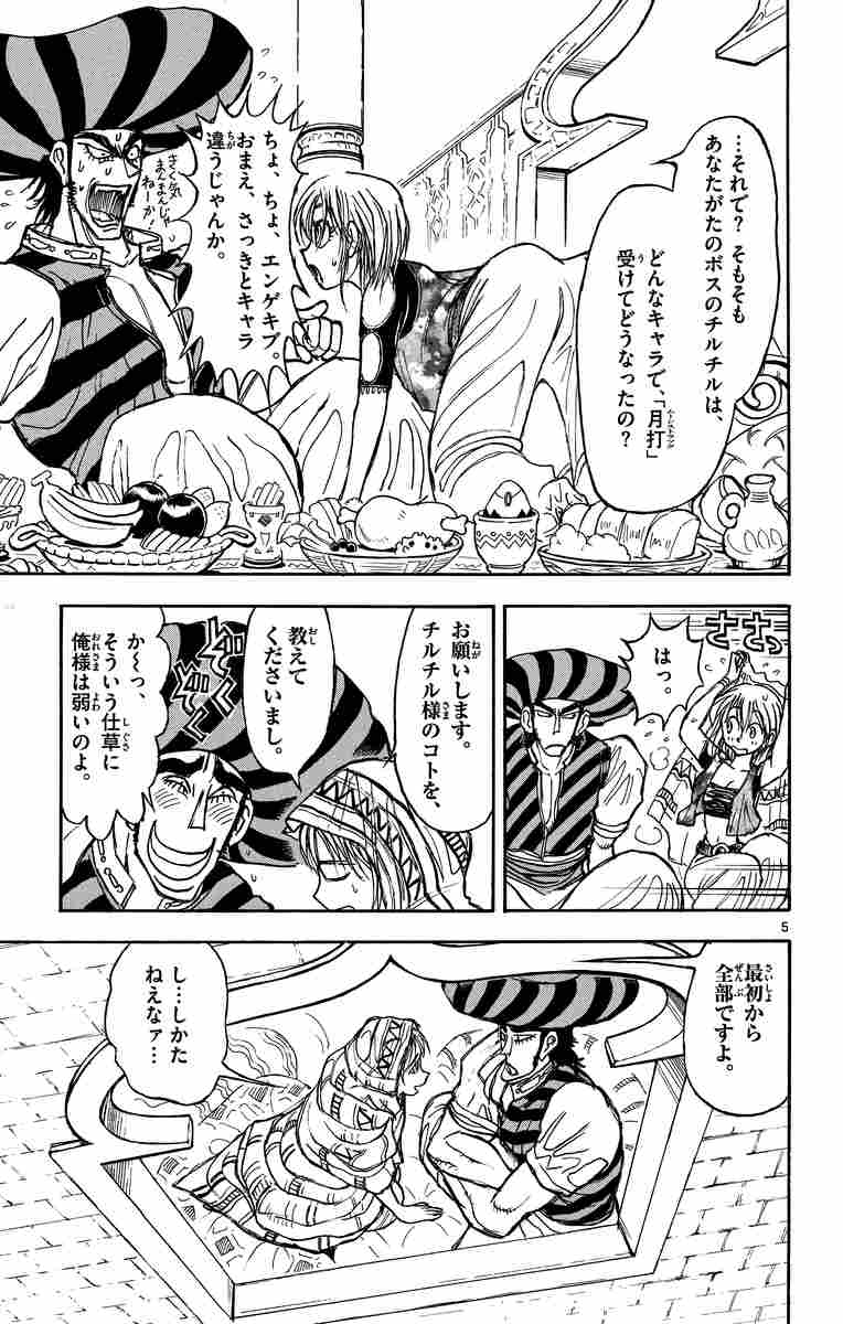 そこでは、月打を受けたアラビアンナイトのキャラクターたちが、「長老会」の面々を人質に取り、何でも願いを叶えられる宝・うちでの小槌を要求していた。