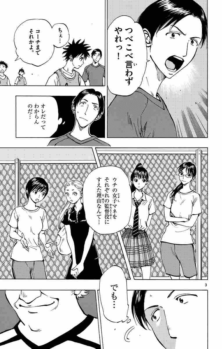武蒼高校の夏合宿に特別ゲストとして招かれたミルコが提案した練習メニューは、女子マネを監督にした紅白戦…