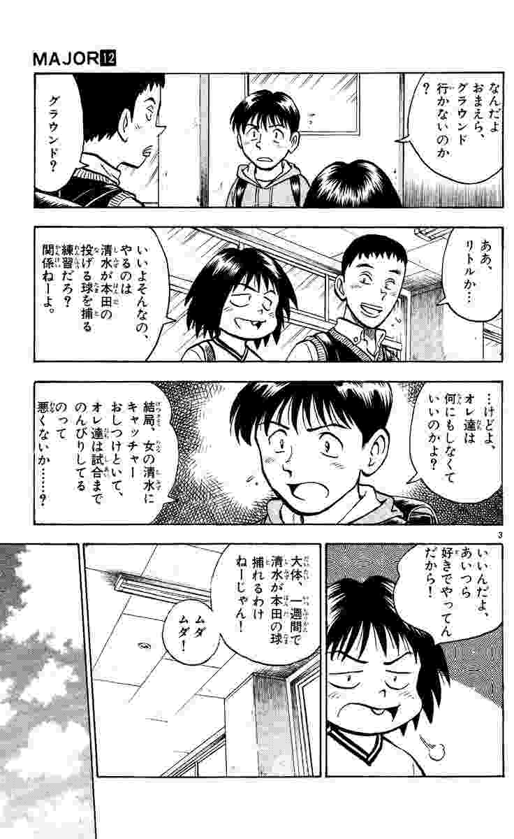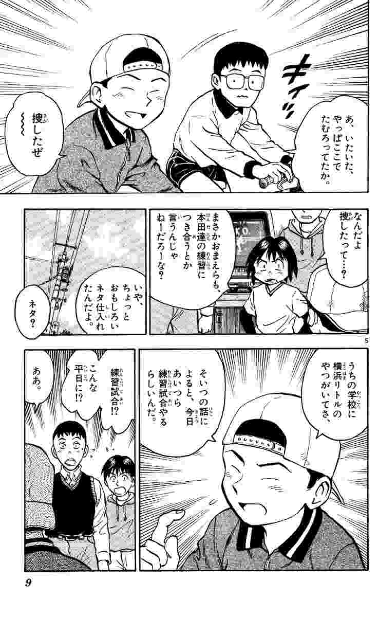 ●登場人物/本田吾郎(プロ野球選手であった亡き父を目指して頑張る少年。三船リトル所属)、清水薫・小森・沢村(三船リトルの選手。三人とも野球を初めてまもない)、佐藤寿也(吾郎の幼いときの野球友達。横浜リトルに所属している)、星野桃子(両親を亡くした吾郎を、実の子として育てている)