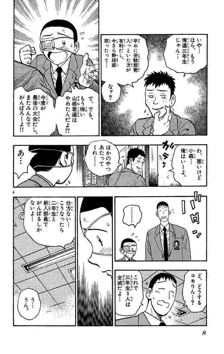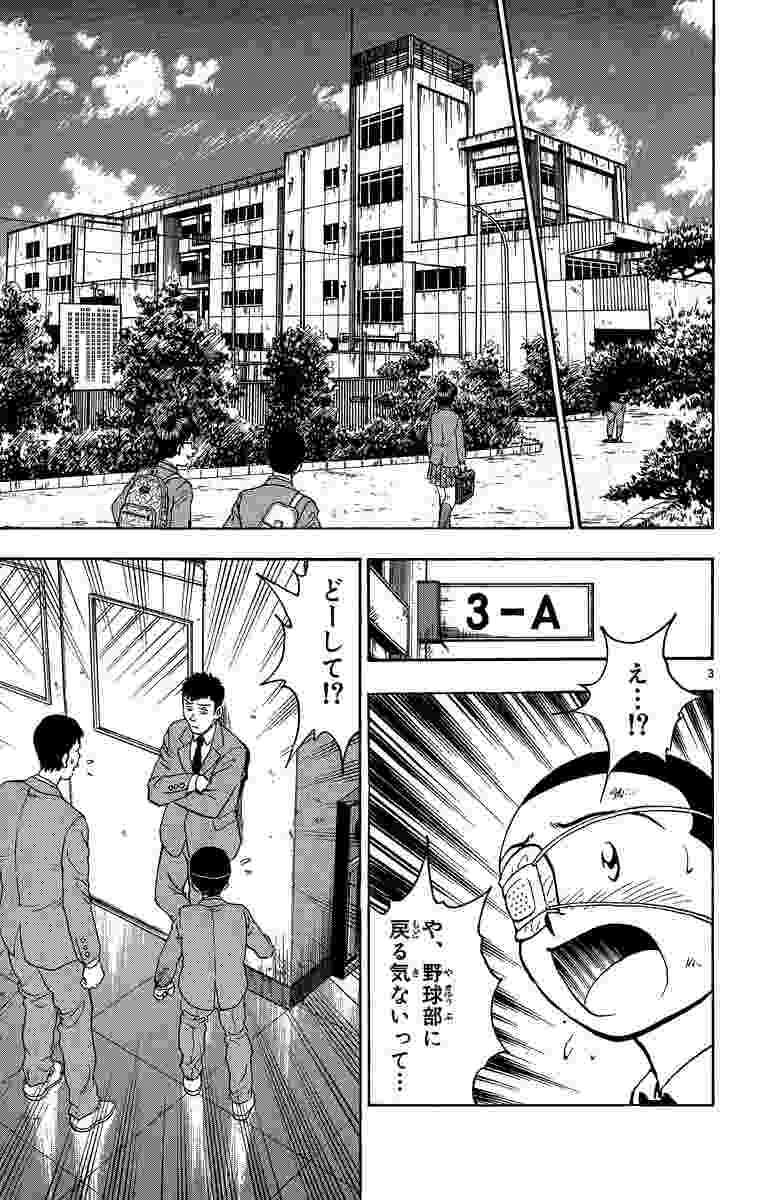 ●登場人物/茂野吾郎(プロ野球選手を目指す中学生)、清水薫(かつては吾郎と同じ野球チームにいたが、吾郎が転校してからは野球からはなれている)、小森(リトルの時は吾郎と同じチームに所属。中学に入ってからは野球部の部員集めに必死)、山根(リトルで野球をしていたが、先輩の嫌がらせにあい、今は荒れた生活送っている)
