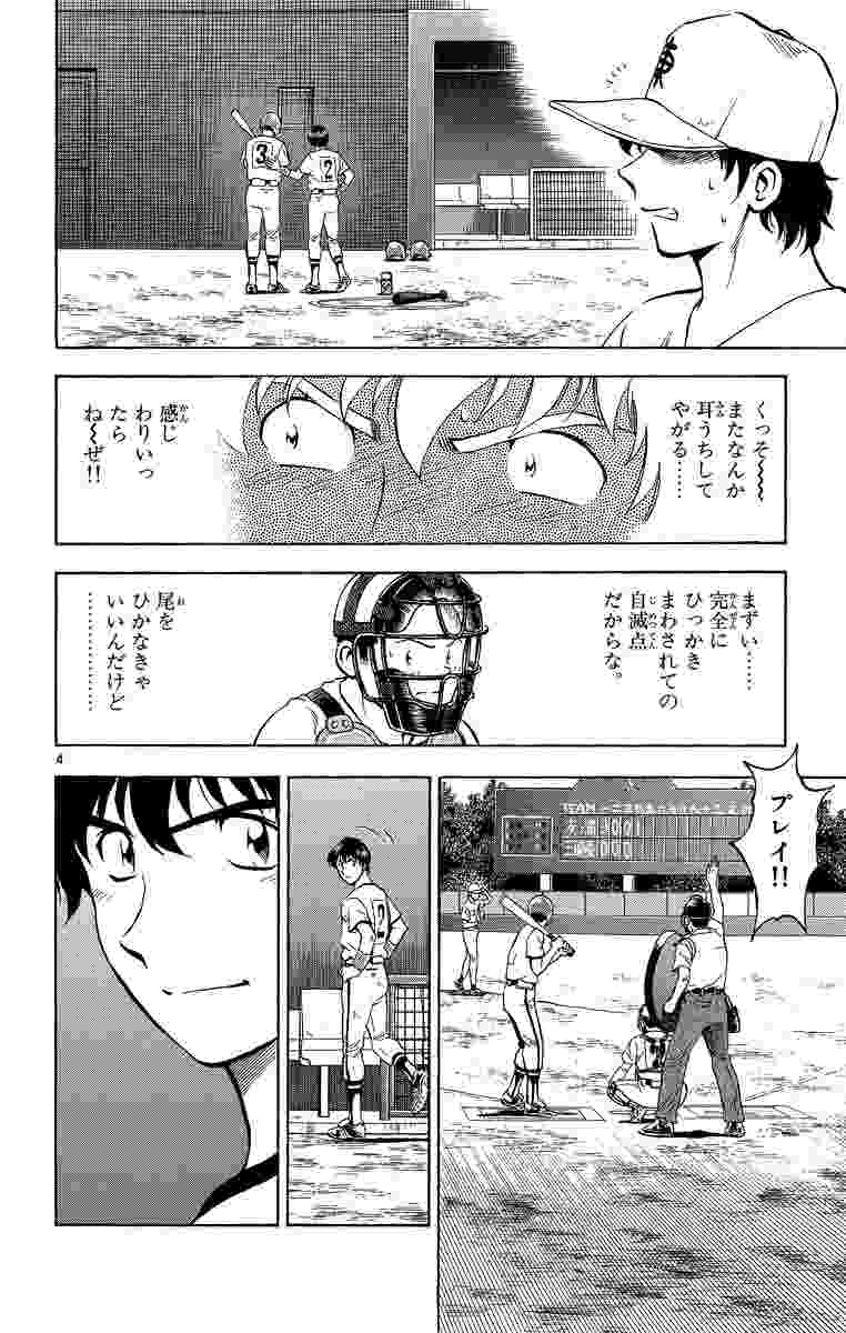 ●あらすじ/吾郎と因縁のライバル・寿也が地区予選準決勝で対決した。0対0でむかえた4回表、意表をついたセーフティバントで出塁した寿也は、動揺する吾郎のミスをさそい、貴重な1点を先取。1点では満足しない寿也は、さらに吾郎を揺さぶる作戦に出る。寿也に完全にペースを崩されている吾郎。これを見て、キャッチャーの小森は吾郎の目を覚まそうと、吾郎の頭にボールをぶつける。(第1話)▼小森のおかげで自分を取り戻した吾郎は、追加点を許さず1点におさえた。三船東中は2番からの好打順。しかし、あっさりと二死となってしまう。そして、バッターボックスには、4番の吾郎が入る。挑発する言葉をかけたり、危険球スレスレのボール球を投げさせたりと、寿也の揺さぶりは続く。吾郎は友ノ浦中のピッチャーを打ち崩すことができるのか?(第2話)