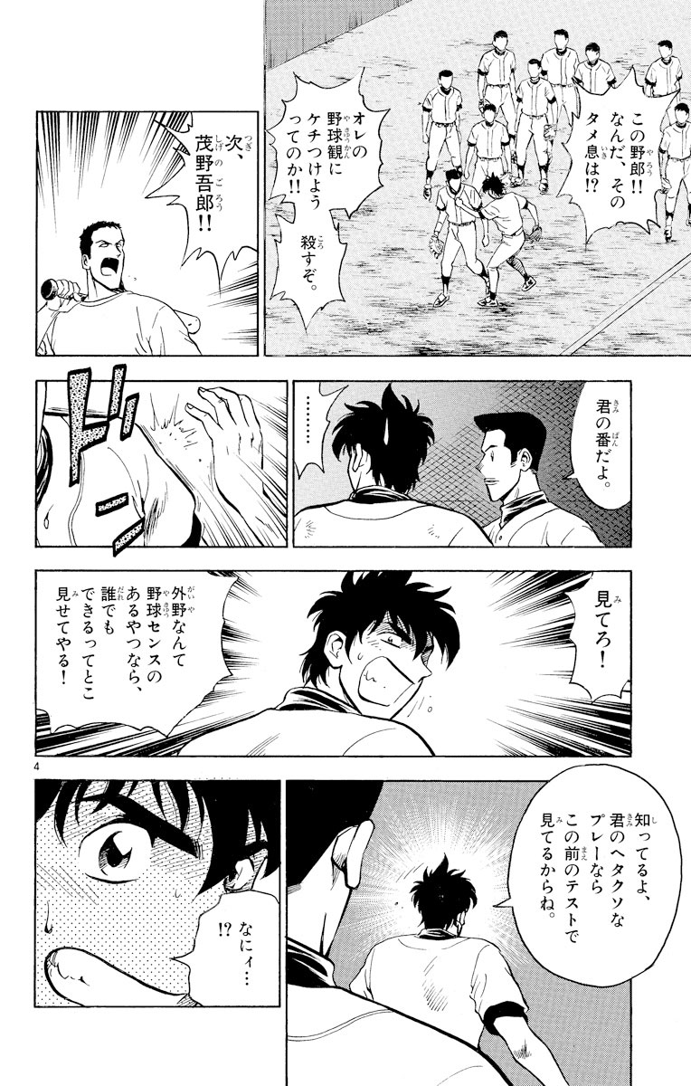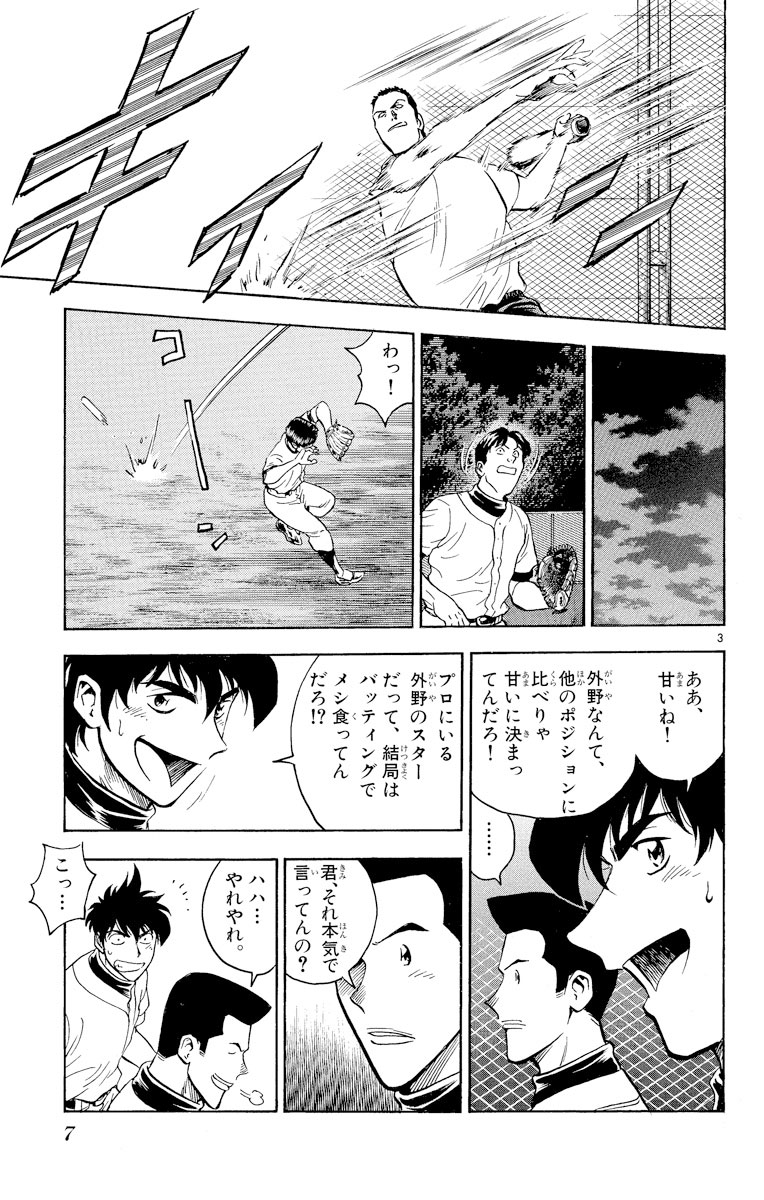 ▼第1話/闇夜のノック▼第2話/修了検定▼第3話/大減点▼第4話/インサイドワーク▼第5話/帰れませんよ▼第6話/あいつだけは…▼第7話/いい加減にしろ!!▼第8話/まさか!?▼第9話/抑えろ!▼第10話/怪物誕生!●登場人物/茂野吾郎(名門・海堂高校野球部の部員。実の父も義理の父もプロ野球選手)、佐藤寿也(吾郎と一緒に海堂高校野球部に入部した天才捕手)●あらすじ/投手適性テストで教官を三振に打ちとるも、なぜか不合格となってしまった吾郎は、野手組の外野手に混じって練習していた。外野手は他のポジションに比べれば簡単と考えていた吾郎だが、暗闇で行われたフライの捕球の練習では、一球も捕れなかった。しかし、吾郎は何かをつかみ始めていた……(第1話)。▼夢島での半年間の辛い訓練が終わり、いよいよ修了検定の日を迎えた吾郎たち。検定の方法は、試合(ゲーム)で力をはかるというものだった。厳しい検定を慣れない外野手で挑むことになった吾郎。試合開始早々、そんな吾郎のもとにボールが飛んできてしまう……(第2話)。