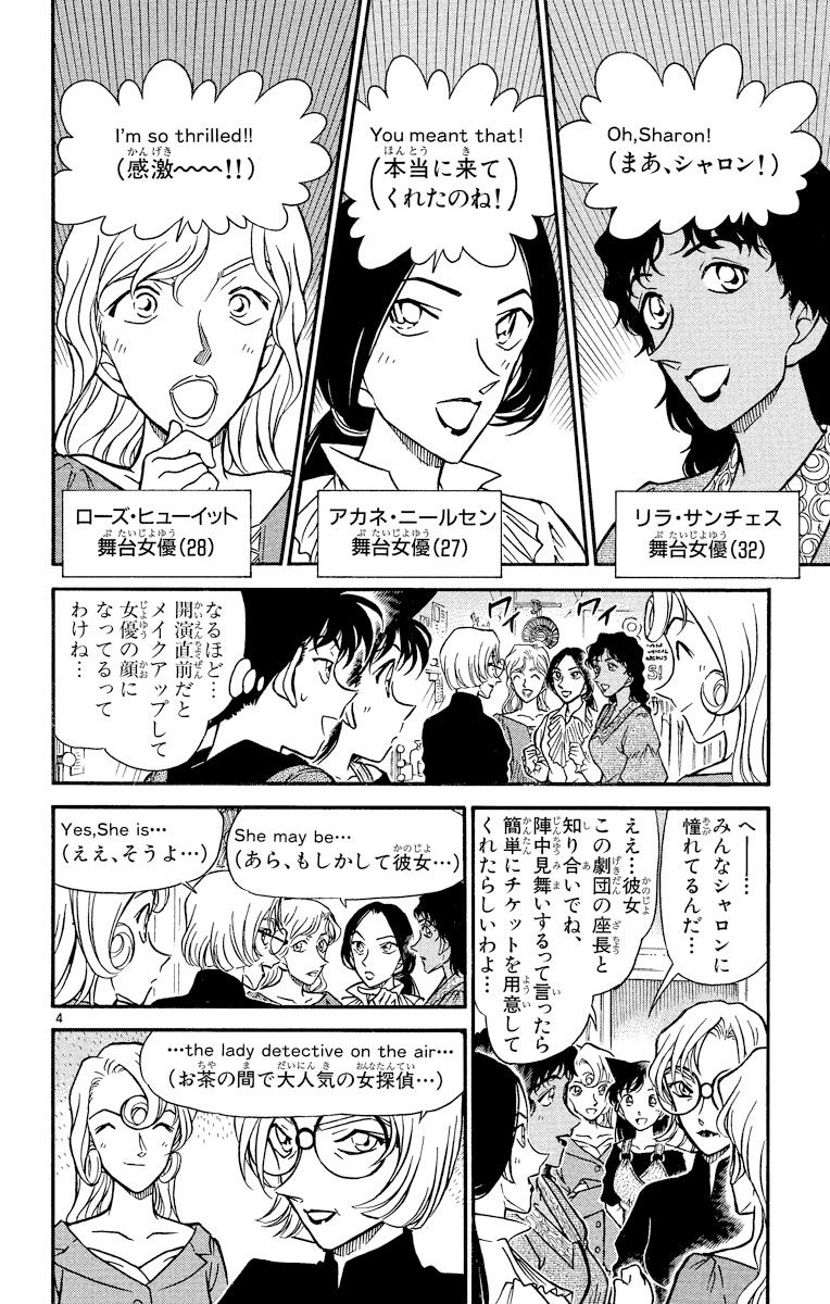 ▼第1話/ゴールデンアップル・2▼第2話/ゴールデンアップル・3▼第3話/ゴールデンアップル・4▼第4話/ゴールデンアップル・5▼第5話/幽霊屋敷の謎・1▼第6話/幽霊屋敷の謎・2▼第7話/幽霊屋敷の謎・3▼第8話/消えた光彦・1▼第9話/消えた光彦・2▼第10話/消えた光彦・3▼第11話/デス・アイランド●主な登場人物/江戸川コナン(見かけはただの小学生だが、その正体は高校生名探偵・工藤新一。謎の男たちに薬を飲まされ身体が縮んだが、推理力は以前と変わらず抜群。正体を隠し、毛利探偵事務所に居候中)、毛利蘭(帝丹高校に通う新一の幼なじみで、ガールフレンド)、毛利小五郎(蘭の父親。妻に逃げられ、娘の蘭と二人暮らしのヘボ探偵だったが、コナンのおかげで世間からは名探偵だと思われている)●あらすじ/コナン、小五郎と共に、食事に出掛けた蘭。だが、そこで倒れてしまった彼女は、薄れゆく意識の中で、かつて経験したある事件のことを思い出していた。それは新一と彼の母・有希子と共に訪れた、ニューヨークでの出来事。人気劇団のミュージカルを観に行ったところ、舞台上で出演者の1人が殺されたのだ。劇団へは3日前に、動物の血で「最も美しい女性へ」というメッセージが書かれた、金色のリンゴが届いていた。そのことを知った新一は、現場の状況と照らし合わせながら推理を開始。犯人を突き止める(第1話~第4話)。●本巻の特徴/新一がコナンに姿を変える前にニューヨークで解決した事件を描く「ゴールデンアップル」、幽霊が出るというアパートで起きた殺人事件のエピソード「幽霊屋敷の謎」、理由不明のまま、みんなに黙って姿を消した光彦が逃亡中の殺人犯と遭遇する「消えた光彦」、そしてリゾート地でテレビ番組の女性スタッフが殺される「デス・アイランド」のプロローグを収録。第11話は36巻に続く。●その他の登場人物/灰原哀(“黒の組織”で薬物を研究していたが、組織を裏切りコナンと同じ薬を飲んで、子供の姿で逃亡。阿笠博士宅に住んでいる)、円谷光彦(コナンの通う帝丹小学校の同級生で、少年探偵団の一員。大人まさりの理論派)、阿笠博士(新一の隣人で、日夜発明にいそしむ天才科学者。新一とコナンが同一人物だと知っている。コナンのために色々な探偵グッズを開発)