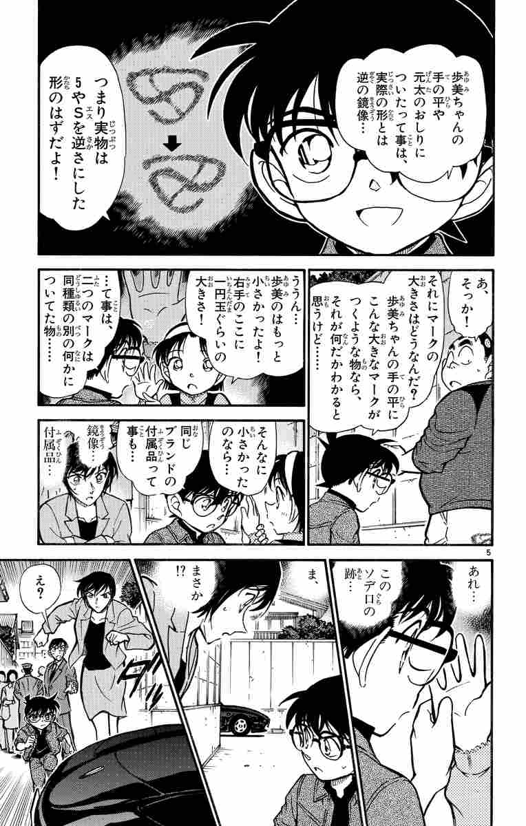 ▼第1話/おしりの印(マーク)を探せ!▼第2話/灰原哀の決意▼第3話/忘れられた携帯電話▼第4話/奇妙なメモリー▼第5話/もうひとつの名探偵▼第6話/どっちの推理ショー!?▼第7話/六面体のメッセージ▼第8話/ダイイングメッセージの裏を読め!▼第9話/仕組まれたメッセージ▼第10話/53,000分の1の悪魔▼第11話/甲子園の魔物の挑発●主な登場人物/江戸川コナン(見かけは小学生だが、その正体は「黒の組織」に薬を飲まされ子供の姿になった高校生名探偵・工藤新一)、毛利蘭(帝丹高校に通う新一の幼なじみで、ガールフレンド)、毛利小五郎(蘭の父親。妻に逃げられ、娘の蘭と二人暮らしのヘボ探偵だったが、コナンのおかげで世間からは名探偵だと思われている)●あらすじ/元太と歩美に数字の「5」に似た刻印を残した通り魔を、少年探偵団と佐藤、高木の両刑事が力を合わせ探しだす! 刻印は自動車のエンブレムだということまでは分かったが、同じモデルの車を持った容疑者は3人いた。真犯人はいったい誰だ!?(第1話)●本巻の特徴/第3~5話では、小五郎が行きつけの喫茶店で、店員から落とし物の携帯電話の持ち主を探して欲しいと頼まれ、そこから思わぬ事件に発展する。第6~9話では、平次と和葉の推理対決にコナンや蘭が巻き込まれて…? 第10~11話では、甲子園の決勝戦を見に来たコナンたちが「甲子園の魔物」と名乗る謎の人物からの自殺予告で奔走することになる…。バラエティーに富んだ事件の数々を描く全11話を収録。●その他の登場人物/灰原哀(「黒の組織」で薬物を研究していたが、組織を裏切りコナンと同じ薬を飲んで、子供の姿で逃亡)、服部平次(関西の高校生探偵。新一のライバル)、遠山和葉(平次のガールフレンド。蘭とは仲良し)、小嶋元太(コナンのクラスのガキ大将的存在) 、吉田歩美(コナンの同級生。好奇心旺盛な女の子)、円谷光彦(コナンの同級生。非科学的な物を信じない)、佐藤美和子(警視庁捜査一課の刑事。同僚男性のアイドル的存在)、高木渉(警視庁捜査一課の刑事。佐藤刑事のことが好き)