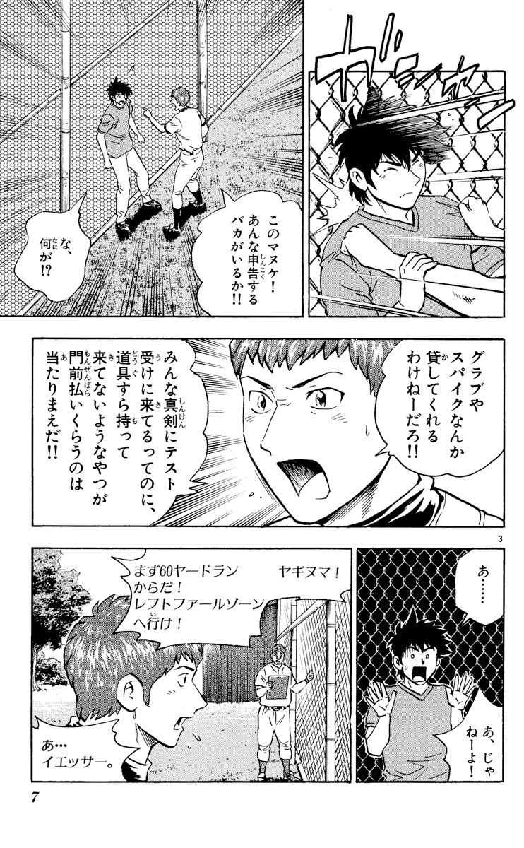 ▼第1話/ふし穴じゃなけりゃ▼第2話/ボルトン▼第3話/トライアウトの結果は…▼第4話/黒だの黄色だの▼第5話/屈辱的なハンデ▼第6話/ROAD TO MAJOR▼第7話/夢▼第8話/魂ぶつけるだけ▼第9話/やってやる!▼第10話/先客だ●主な登場人物/茂野吾郎(名門・海堂高校から、聖秀学院に移りゼロから野球部を創設。卒業後はメジャーリーガーを目指し単身アメリカに渡る)●あらすじ/アメリカに到着早々置き引きにあい、荷物もお金も無くしてしまった吾郎。だが、同じくメジャーリーガーを目指して渡米中の日本人・八木沼に助けられ、共にサーモンズという球団のトライアウト(入団テスト)を受けることに。ところがスパイクもグローブも持っていなかった吾郎は、球団からテストを受けることを拒否されてしまった! なんとか自分の投球を見せようと吾郎が取った手段とは…(第1話)。●本巻の特徴/1次テストに合格した吾郎と八木沼の次なる関門は、なんとテスト生たちがチームを作り、シングルAのチームと試合をするというものだった。しかも格上相手にもかかわらず、10点差のハンデから逆転勝ちしなければ、全員不合格と言われて…。果たして吾郎は、この過酷なトライアウトを突破できるのか!?●その他の登場人物/ジョー・ギブソン(41歳にして現役のメジャーリーグ投手。吾郎の実父・茂治の死に関わっている。また、吾郎がメジャーを目指すきっかけを作る)、八木沼隼人(ヒッチハイクをしている吾郎の前に車を止めた日本人。メジャーを目指し、サーモンズのトライアウトを受けるために吾郎と共にアリゾナへ)