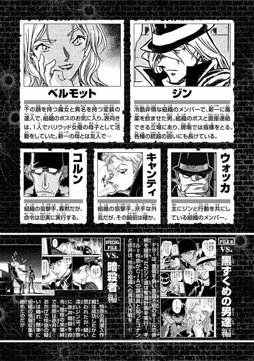 コナン最大の謎に迫る総集編パート2!! 「名探偵コナン1~85巻」に収録された作品の中から、選りすぐりエピソードを厳選した特製コミックス。来年春公開の「劇場版名探偵コナン」は劇場版20作目となる記念大作!!それを記念して、物語の中で最大のミステリーである「黒ずくめの男達」とコナンの闘いをまとめた総集編となります。死んだ赤井は? 沖矢昴とは何者? バーボンの正体は? そしてコナンの運命は!? 見逃していた謎のエピソードが、この本を読めば必ず分かる!!