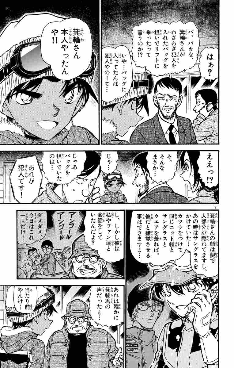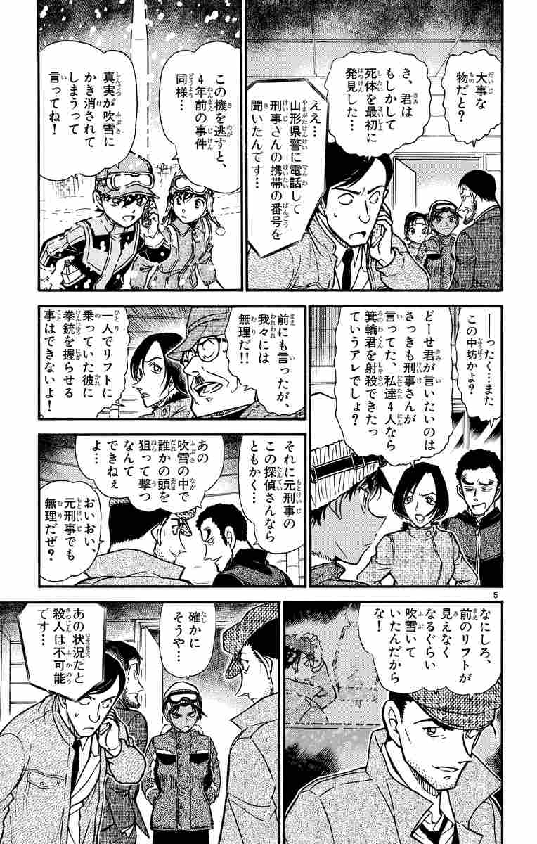 ▼第1話/吹雪の中の復讐▼第2話/おさかな事件▼第3話/3匹の魚▼第4話/ため息潮干狩り▼第5話/ペットボトルの怪▼第6話/混入トリック▼第7話/ロシアンブルー▼第8話/ゴロはゴロでも!?▼第9話/開かずの窓▼第10話/作られた密室▼第11話/魔物の抜け穴●主な登場人物/江戸川コナン(見かけは小学生だが、その正体は「黒の組織」に薬を飲まされ子供の姿になった高校生名探偵・工藤新一)、毛利蘭(帝丹高校に通う新一の幼なじみで、ガールフレンド)、毛利小五郎(蘭の父親。妻に逃げられ、娘の蘭と二人暮らしのヘボ探偵だったが、コナンのおかげで世間からは名探偵だと思われている)●あらすじ/新一と平次がまだお互いを知らない中学生だった頃、二人は雪山で起きた人気俳優殺人事件の推理合戦を繰り広げていた。映画撮影の関係者を集めて事情聴取が行なわれていた時、事件の謎を解いた平次が現れ、それとほぼ同時に新一も、その場にいた刑事の携帯電話に連絡を入れてきた。そして2人は声を揃えるかのように、全く同じ推理を語り始め…(第1話)。●本巻の特徴/喫茶店店員・梓に送られてきた子供からのSOSメールの真相(第2~3話)、潮干狩りを楽しむ少年探偵団の前で起きた大学生毒殺事件(第4~6話)、小五郎のギャル語解読奮闘記(第7~8話)、魔物が住みついた別荘での密室殺人事件(第9~11話)を収録。コナンが正体を疑っている本堂瑛祐も登場。●その他の登場人物/服部平次(関西の高校生探偵。新一のライバル) 、灰原哀(新一を幼児化させた薬の考案者だが、自らも幼児化して「黒の組織」から逃亡。現在、コナンの同級生として阿笠の家に居候中)、小嶋元太・吉田歩美・円谷光彦(コナンの同級生。コナン、哀と共に少年探偵団を結成)、阿笠博士(新一の隣人で、日夜発明にいそしむ天才科学者。新一とコナンが同一人物だと知っている。コナンのために色々な探偵グッズを開発)、本堂瑛祐(蘭のクラスの転校生。ドジな少年だが、何か裏がありそう)