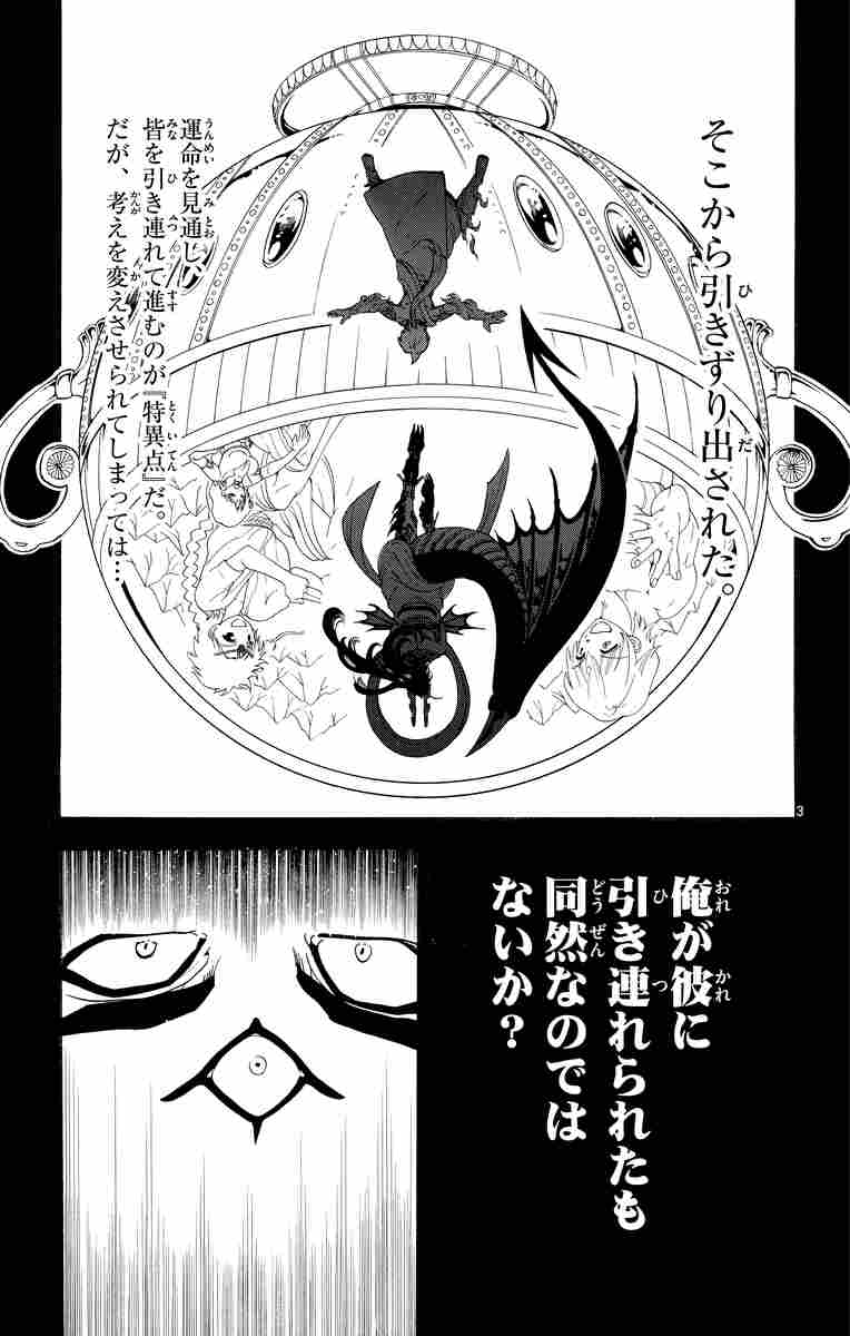 それは、世界中の人々から敵意を向けられたまま、世界中の人々守る為の戦いへと深化していく…!!そしてアリババの前に現れたのは、剣の師匠、シャルルカンで…!?