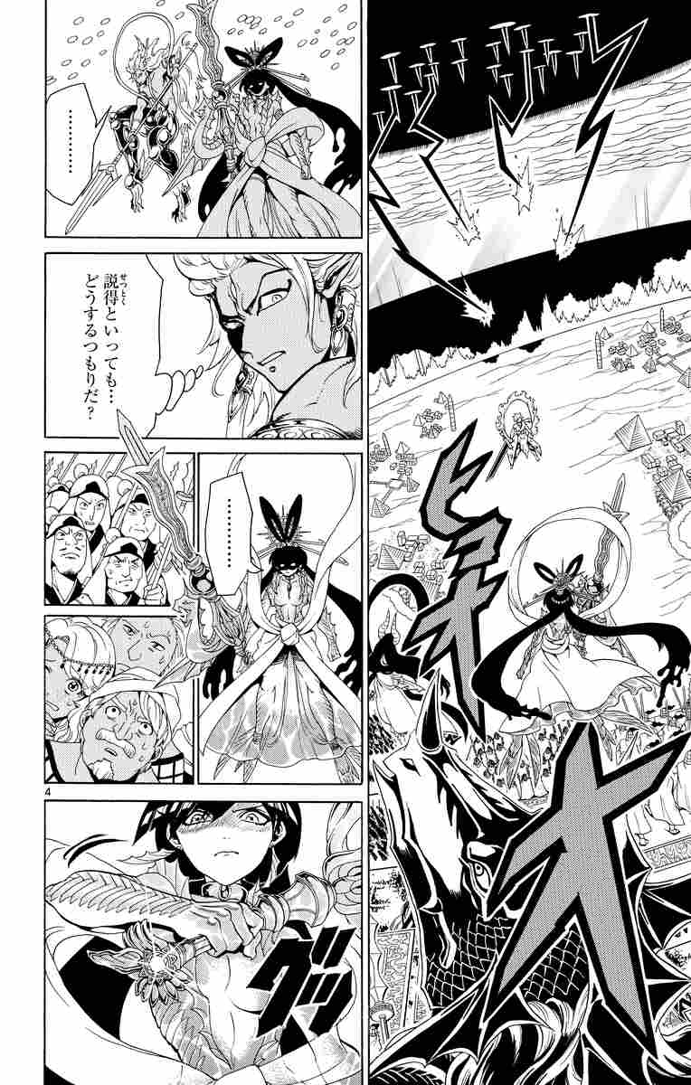 そして聖宮ではダビデを止める為、シンドバッドが命懸けの消耗戦を続ける。その時、シンドバッドの胸中に渦巻くものは…