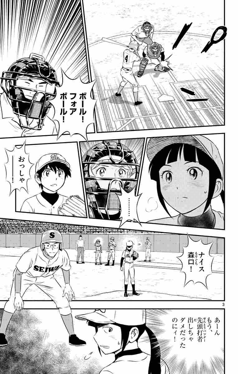 女子だらけの野球部をキャプテンとして引っ張る大吾が、ついに捕手で登場します! 4月からTVアニメも始まり、ますます盛り上がる国民的野球漫画です!