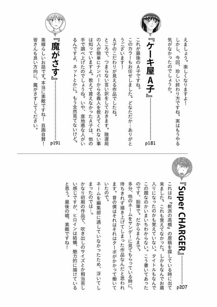 「今日俺!!」の原点を感じさせるツッパリものから、青年誌にて掲載された事務員コメディーまで多彩な西森ワールドをご堪能あれ。
