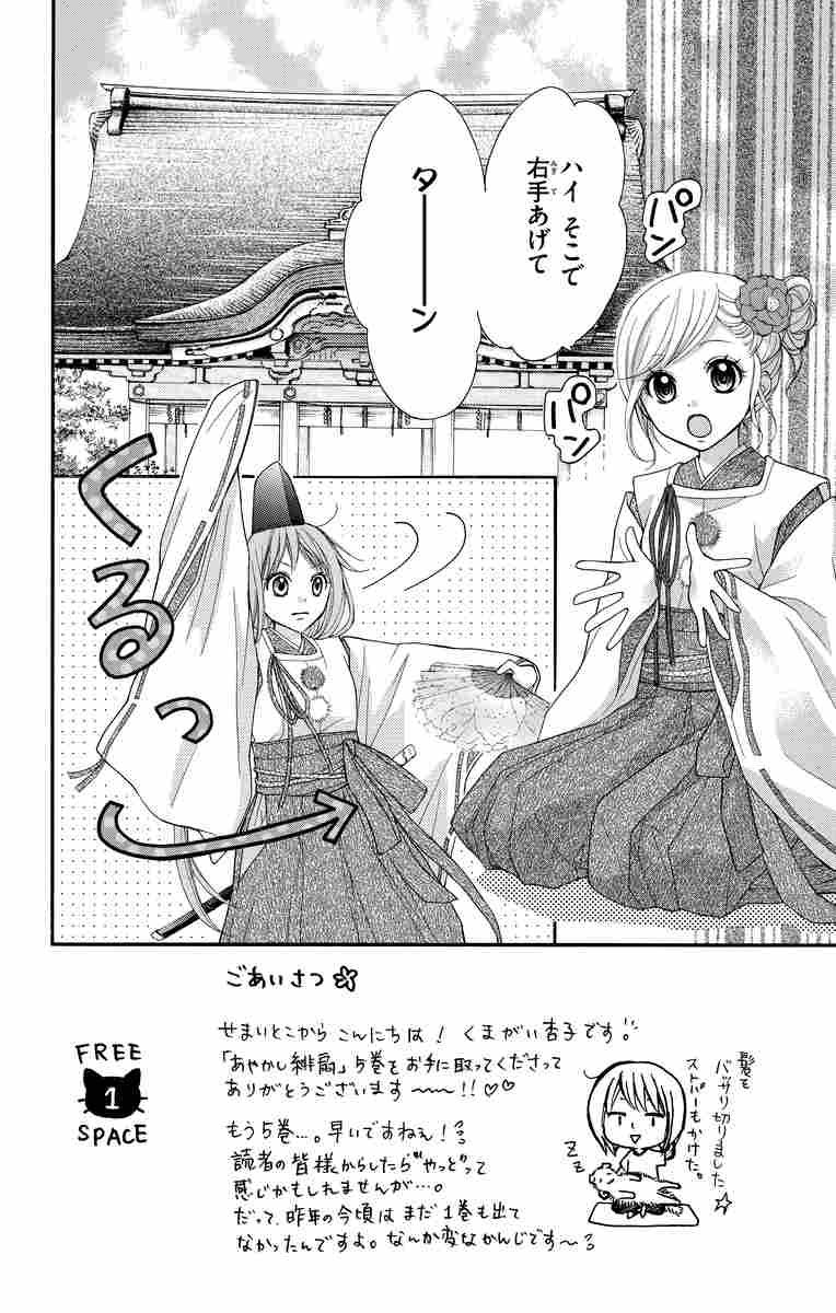 待望の5巻ついに発売です。物語はいよいよ佳境に突入。実は「あやかし緋扇」はくまがい先生の今まで出した単行本の中で、一番長い物語で一番売れている物語になりました!連載が続いているのは、もちろん、「あやかし緋扇」が大人気だから!しかも、くまがい先生のまだ描いていない壮大なアイデアはこのあとの巻に登場です!