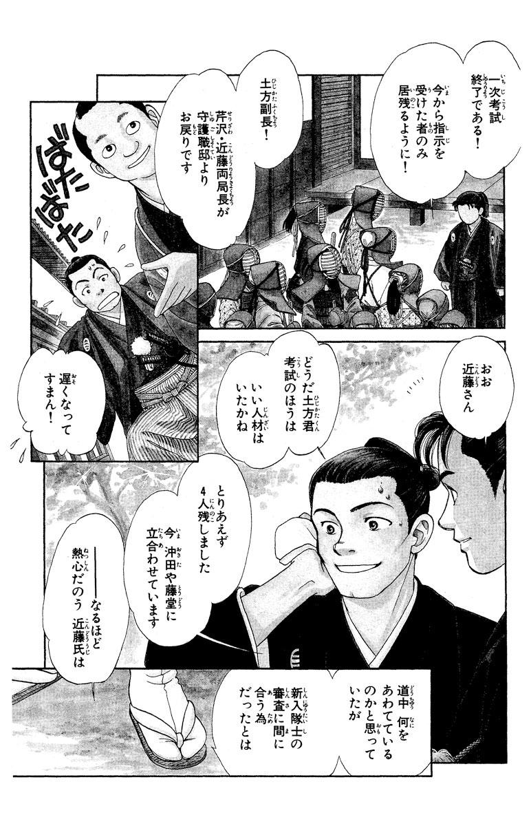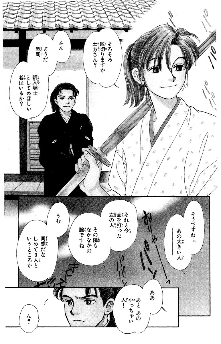 時は幕末。文久3年(西暦1863年)の京都。富永セイは、兄と父を「幕府を倒し天皇政治を起こそうとする長州勤皇派」に殺されてしまう。仇を討とうと考えたセイは、長州勤皇派に対立して兄が入隊したかった、壬生浪士組の入隊試験を受けた。そのために、名前を神谷清三郎とかえ、性別も男と偽った。なんとか入隊を許され、副長助勤の沖田総司の下に付くことができた清三郎。ところが、まわりはケダモノのような浪士だらけ。頼りにしていた沖田総司も自分が考えていた人物とはちがっていて幻滅してしまう。沖田総司 だけではなく壬生浪士組自体、あてにならないと思い、夜にこっそり抜けだそうとした清三郎はそこで…!? ●収録作品 風光る