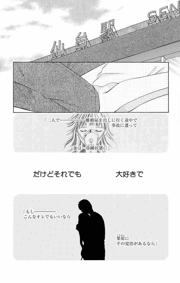 だけどそれでも大好きで… 海里(かいり)の妻の状態を知ってもなお想いが募る未亜(みあ)。海里もまた、未亜をあきらめられず、ついに二人は茨の道を進むことを決意する。出張先の仙台で、やっと二人きりになれると思った矢先、病院からの電話が…。そして、とうとう宮沢が未亜に本気宣言を――!?