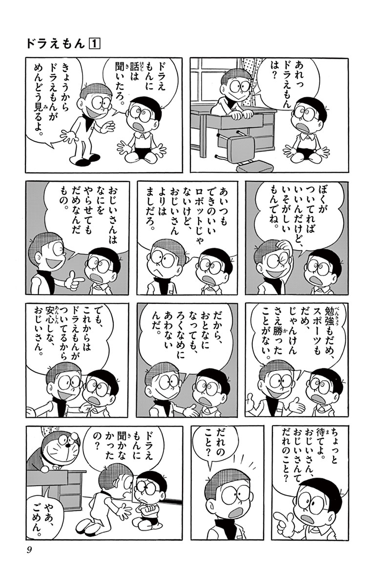 ▼第1話/未来の国からはるばると▼第2話/ドラえもんの大予言▼第3話/変身ビスケット▼第4話/秘(丸囲み)スパイ大作戦▼第5話/コベアベ▼第6話/古道具きょう争▼第7話/ペコペコバッタ▼第8話/ご先祖さまがんばれ▼第9話/かげがり▼第10話おせじ口べに▼第11話/一生に一度は百点を▼第12話/プロポーズ大作戦▼第13話/◯◯が××と△△する▼第14話/雪でアッチッチ▼第15話/ランプのけむりオバケ▼第16話/走れ! ウマタケ