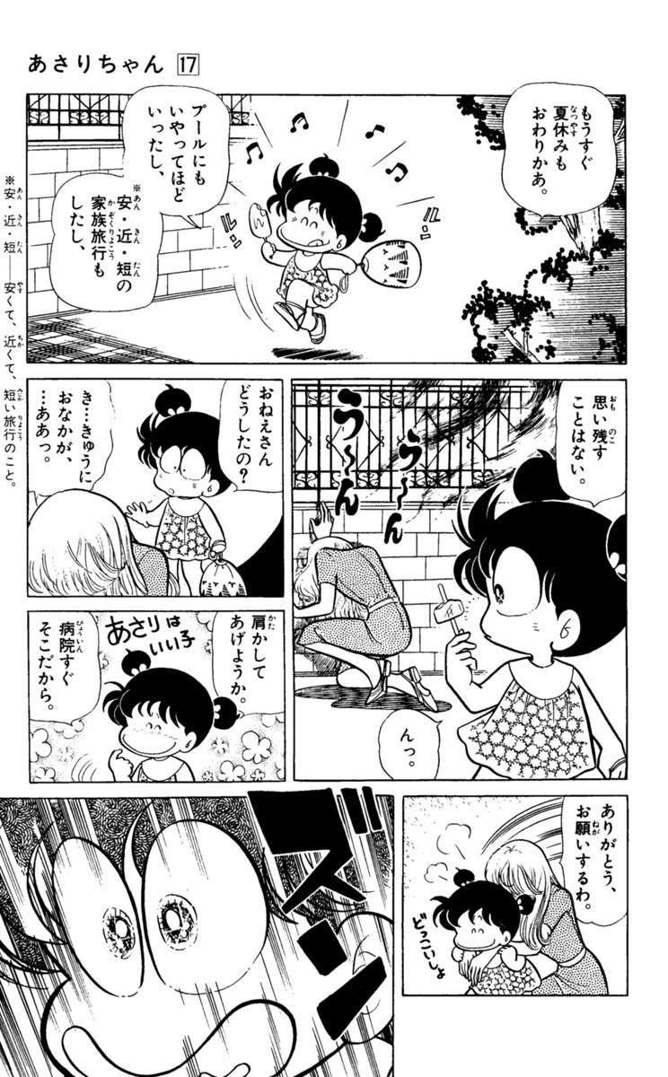 元気いっぱいの明るい美少女(?)あさりちゃんが巻き起こす痛快ドタバタコメディー。日本一元気な小学四年生あさりには、ケンカの強い姉タタミや、さらに強い母のさんごがいる。この強敵二人をたおすため、あさりのハチャメチャなギャグパワーはいつも全開! この三人のドタバタギャグバトルに父いわしは毎日たじたじ。爆笑浜野家の大騒動に目を離すな!! ▼第1話/心配事…ってなんだろう?▼第2話/不良少女とよばないで▼第3話/かぎはなくても▼第4話/家庭教師の条件▼第5話/のろいの市松人形▼第6話/チャレンジ・リフォーム▼第7話/初日の出にお願い▼第8話/ネコババはダメよ!▼第9話/OH!! 新年パーティー▼第10話/よい子のおつかい▼第11話/母をたずねて三万光年