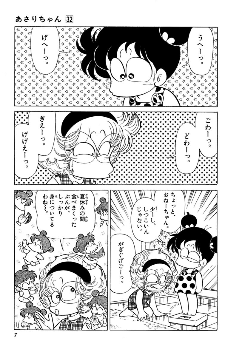 元気いっぱいの明るい美少女(?)あさりちゃんが巻き起こす痛快ドタバタコメディー。日本一元気な小学四年生あさりには、ケンカの強い姉タタミや、さらに強い母のさんごがいる。この強敵二人をたおすため、あさりのハチャメチャなギャグパワーはいつも全開! この三人のドタバタギャグバトルに父いわしは毎日たじたじ。爆笑浜野家の大騒動に目を離すな!! ▼第1話/食べて身につけま~す▼第2話/今年もダメだった夏休み▼第3話/夏休みボケ▼第4話/ボケなおしラジオ体操▼第5話/ああ金欠病▼第6話/花子さんハーイ!▼第7話/ひと目ボレなの▼第8話/あさちゃんのいい先生の条件▼第9話/雨の日曜日▼第10話/ワープロで遊びたい!▼第11話/あさりの赤い糸▼第12話/正座の練習▼第13話/話さずにはいられない▼第14話/宿命のライバル▼第15話/お金がほしい!▼第16話/あさりちゃんのさいの河原