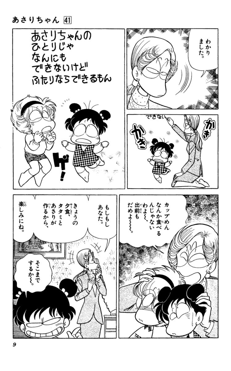元気いっぱいの明るい美少女(?)あさりちゃんが巻き起こす痛快ドタバタコメディー。日本一元気な小学四年生あさりには、ケンカの強い姉タタミや、さらに強い母のさんごがいる。この強敵二人をたおすため、あさりのハチャメチャなギャグパワーはいつも全開! この三人のドタバタギャグバトルに父いわしは毎日たじたじ。爆笑浜野家の大騒動に目を離すな!! ▼第1話/あさちゃんのひとりじゃできないもん▼第2話/恋人は四年生から▼第3話/桜より桜モチ!▼第4話/個性的だにょん▼第5話/愛鳥週間▼第6話/ノーベルってだあれ?▼第7話/うにょにお洋服▼第8話/1/2の確率▼第9話/夏はきらい!▼第10話/七夕の約束▼第11話/ふたりのパパ▼第12話/終業式攻防戦▼第13話/あさりをさがせ!▼第14話/悲劇のパープリン伝説▼第15話/懺悔室にいきたい▼第16話/土曜日はお休み▼第17話/タンゴ東京音頭▼第18話/まん中コワ~イ