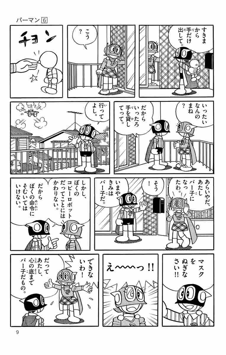 中でも特筆すべきは、「パー子の秘密」。パー子の正体をどうしても知りたいパーマン1号は、コピーロボットを使った意外な方法でその素顔に肉薄!