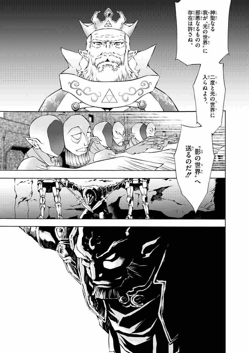 神々の力が眠る王国ハイラルを我が物にすべく、ゼルダ姫を襲った影の王・ザント。それ以来、ハイラル王国を黄昏の黒雲が覆い、人々は魂を奪われ、さまようことに。そんなトワイライトの領域で狼になったリンクの前に現れたミドナとともに、光の世界を取り戻す旅に出たウルフリンクが、この巻でいよいよ緑衣をまとった勇者に変身。