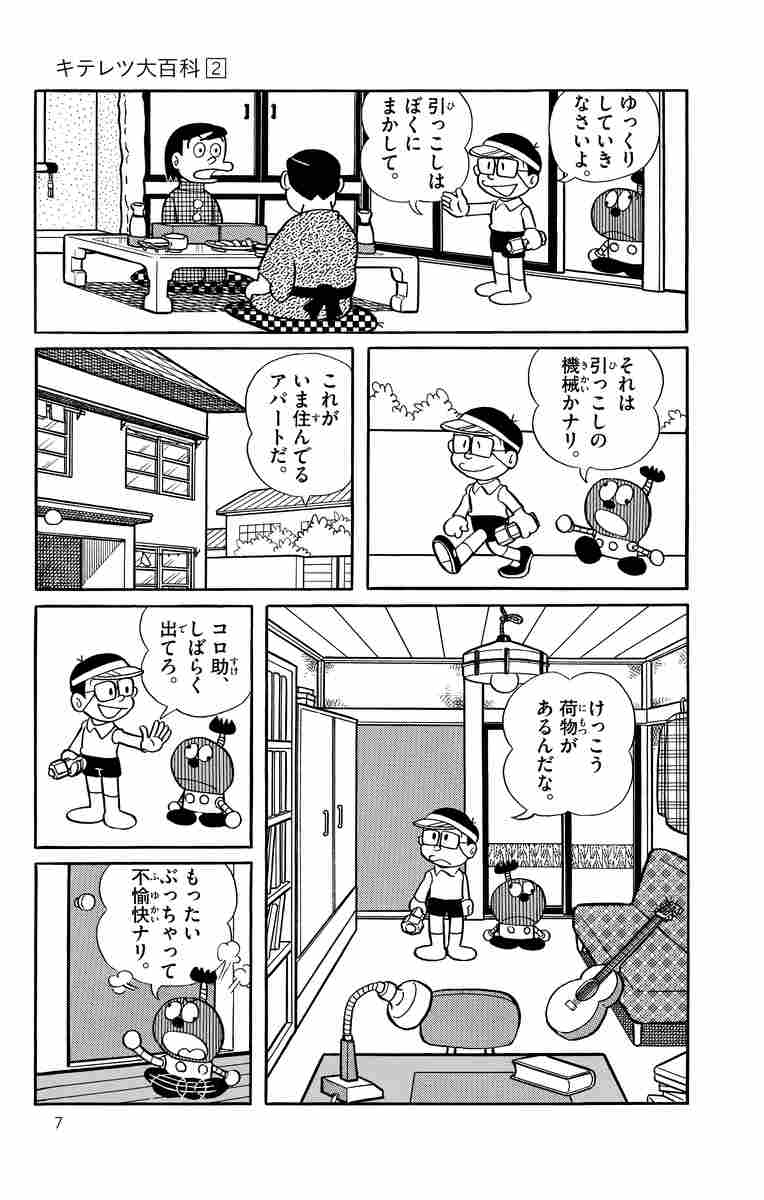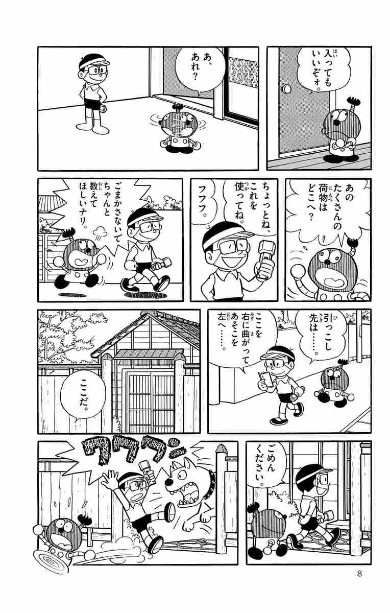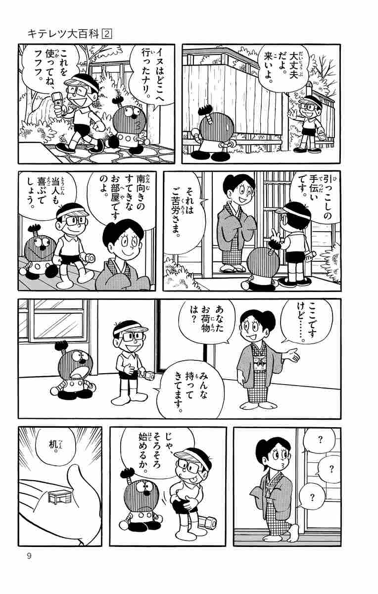 第2巻では「如意光」で小さくなって大冒険、「超鈍速ジェット機」で空を飛び、「航時機」で江戸時代の”あの人”に遭遇!