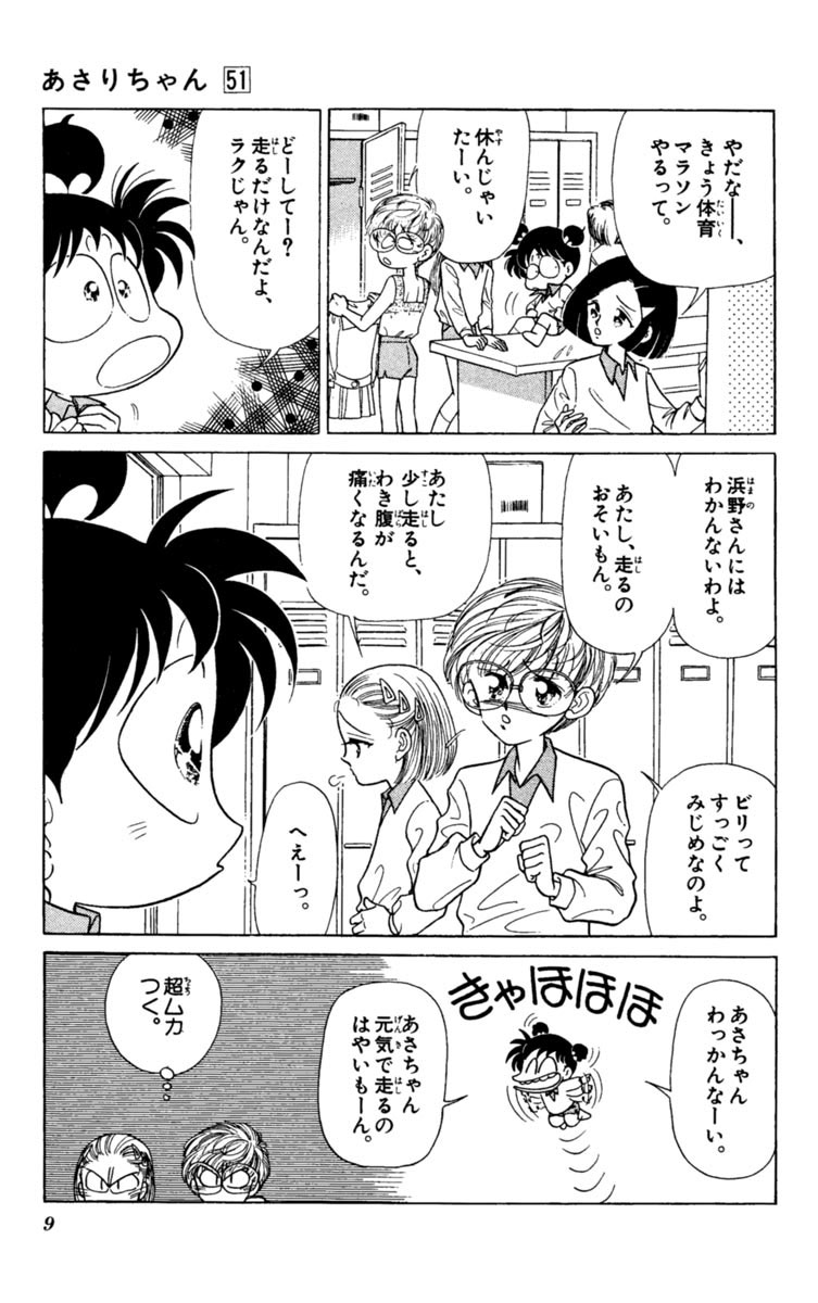 元気いっぱいの明るい美少女(?)あさりちゃんが巻き起こす痛快ドタバタコメディー。日本一元気な小学四年生あさりには、ケンカの強い姉タタミや、さらに強い母のさんごがいる。この強敵二人をたおすため、あさりのハチャメチャなギャグパワーはいつも全開! この三人のドタバタギャグバトルに父いわしは毎日たじたじ。爆笑浜野家の大騒動に目を離すな!! ▼第1話/かけっこ一番▼第2話/珍獣タニシ▼第3話/パニック図書館▼第4話/あさちゃんってどんな子?▼第5話/テスト奪還作戦▼第6話/怒りの放電パワー▼第7話/相合傘したい▼第8話/人にいえない頼みごと▼第9話/涼しくなりたーい!▼第10話/新・学校怪談▼第11話/ウォーキングナビゲーター▼第12話/一番大事なもの▼第13話/上手なダチョウの乗りかた▼第14話/これがごちそうだ!▼第15話/謎の宅配便▼第16話/ママの若がえり宣言▼第17話/クッキークッキークッキッキ▼第18話/大磯くんの憂鬱▼第19話/バイバイとさようなら