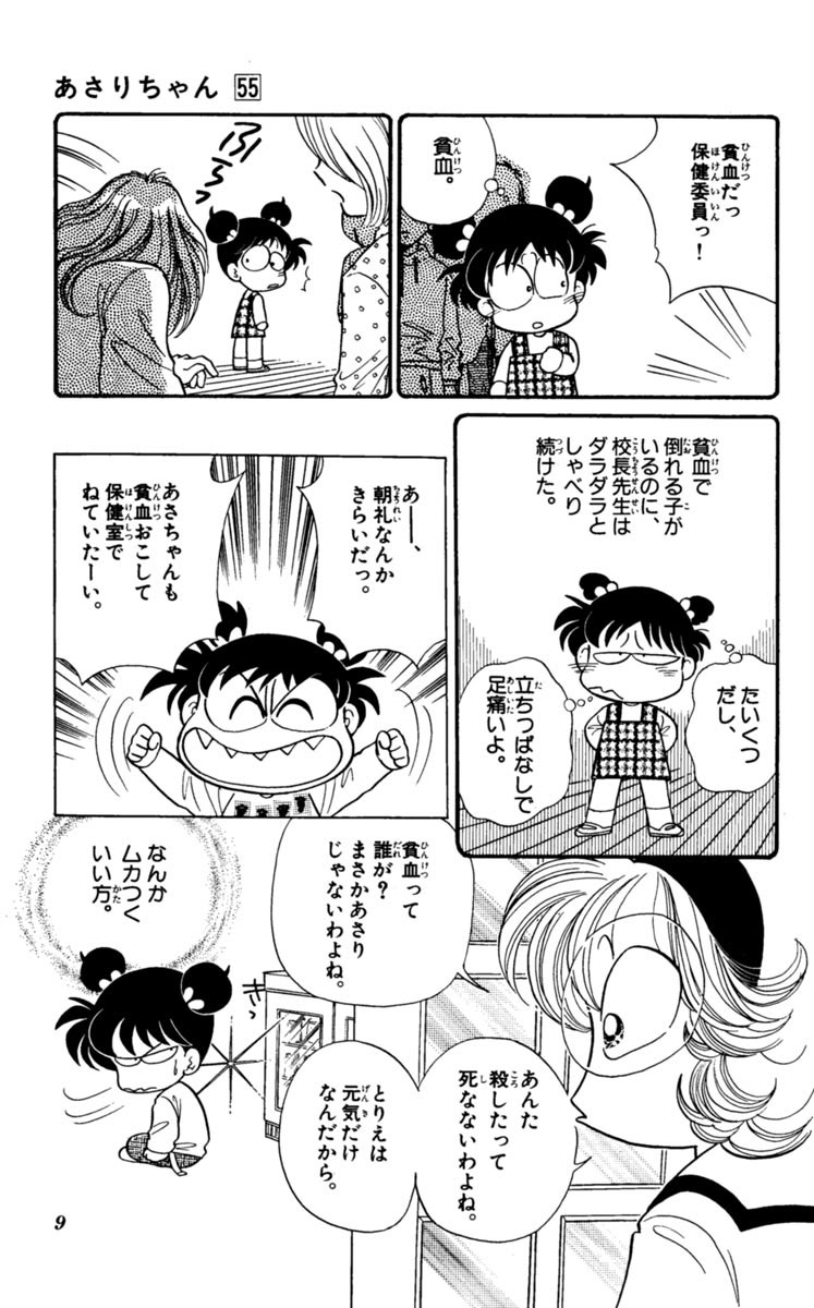 元気いっぱいの明るい美少女(?)あさりちゃんが巻き起こす痛快ドタバタコメディー。日本一元気な小学四年生あさりには、ケンカの強い姉タタミや、さらに強い母のさんごがいる。この強敵二人をたおすため、あさりのハチャメチャなギャグパワーはいつも全開! この三人のドタバタギャグバトルに父いわしは毎日たじたじ。爆笑浜野家の大騒動に目を離すな!! ▼第1話/正義のラットウーマン▼第2話/クラス写真でめだちたい!▼第3話/あさちゃんと三匹のネコ▼第4話/パンツの行方▼第5話/父の日の父▼第6話/ダイエット diet!▼第7話/こりないあさり▼第8話/あさりの自由研究▼第9話/古本パニック▼第10話/恐怖の仮装行列▼第11話/秋のメルヘン?▼第12話/ケーキがいっぱい▼第13話/テストの夢▼第14話/家族の順番▼第15話/郵便は正しく▼第16話/あさちゃんの恋人試験▼第17話/ゴメンねカバちゃん▼第18話/花束欲しい!