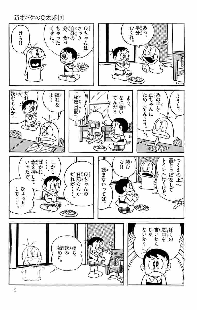 ちょっと困ったお隣さんヒョーロクさんとの決死のドライブにかり出されるQちゃん(「恐怖のオンボロカー」)。「たとえ日本人全員が正ちゃんを疑ったとしても、ぼくだけは信じるよ!」Qちゃんのまっすぐな友情に泣かされる「Qちゃんは名探偵」などなど。本巻もレジェンド級の爆笑名編が粒ぞろい!