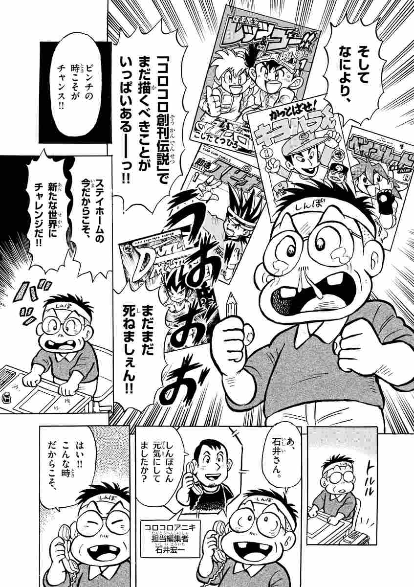 第6巻では●連載が大ヒットすると、漫画家はどれくらい儲かるのか!?を赤裸々に描いた「のむらしんぼイケイケ伝説」●「つるピカハゲ丸」のアニメ化から極めつけの思い出、そして…!?を描く「のむらしんぼ頂点伝説」●「『スーパーマリオくん』誕生伝説」●「コロコロ漫画の父・沢田ユキオ伝説」●「『ザ★超能力』漫画家・あすかあきお伝説」●「コロコロの不思議ワールド伝説」●「炎の闘球児 ドッジ弾平」誕生伝説、など熱き伝説満載!!●さらに、お笑いコンビ・錦鯉が原作の熱血皿洗いバトル漫画(!!!???)「皿洗い少年 洗太」も特別収録!!
