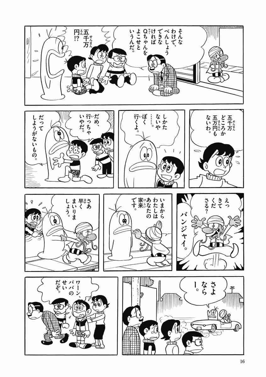 ネプチャ王子(64年50号)/ 魔法のやかん(64年51号)/ 戦争はおわったのに(別冊64年12月号)/ カゼきらい!(64年52号)/ ニコニコ運動(65年01号)/ おれは山男(65年02号)/ イヌに強くなろう(65年03+04号)/ バイオリンで倒せ!(増刊65年正月号)/ 為左衛門の秘宝(別冊65年1月号)/ カチカチ山の決闘(65年05号)/ むだづかいしよう(65年06号)/ 正義の味方モシモ仮面(65年07号)/ 8ミリ超大作(65年08号)/ オバQカー(65年09号)/ 決戦オバQとりで(65年10号)/ ナイババと四人の盗ぞく(65年11号)/ テレ助くん(65年12号)/ 春だ!!つりに行こう!!(65年13号)/ ヒマラヤの雪男(増刊65年春号)/ ぼくのコレクション(別冊65年4月号)/ あこがれのラーメン(65年14号)/ ニューモードを着よう(65年15号)/ ★Qちゃんの「美容教師」(65年16号)/ いたずらチャンピオン(65年17号)/ 歌手になりたい(別冊65年5月号)/ ★Qちゃん頭の毛を、よこせ(65年18号)/ オバケのおじさん(65年19号)/ あつかましいやつ(65年20号)/ 潮干狩り(65年21号)/ うそつきはだれだ(65年22号)/ ゆうれい村(別冊65年6月号)