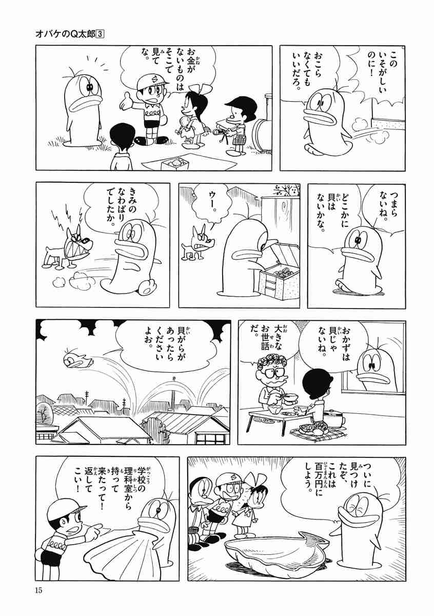 百万長者(65年23号)/ ぼくについてくるな(65年24号)/ アラン・イヤン氏来日す(65年25号)/ OK屋Qちゃん(65年26号)/ オバQ一家勢ぞろい(65年27号)/ ノミ軍襲来す(65年28号)/ おしかけ入学(65年29号)/ ようこそオバケの国へ(65年30号)/ 空とぶ円盤を追え(65年31号)/ フィルムをねらえ(別冊65年7月)/ 世界一周(増刊65年夏号)/ ハカセもいっしょに(65年32号)/ おかしなおかしなウマとウマ(65年33号)/ クークークー(65年34号)/ Qちゃんのさいみん術(65年35号)/ さすらいのペンギン(65年36号)/ 宿題はひきうけた(65年37号)/ 悲しい悲しい物語(65年38号)/ スネかじりはごめんだ(65年39号)/ スマートになろう(65年40号)/ ぼくらのゴーストタウン(別冊65年10月号)/ イヌがイヌを飼う話(65年41号)/ 日本人月に立つ(65年42号)/ ★里親オヤオヤ(65年43号)/ Qちゃん鉄道(65年44号)/ もしもし長電話(65年45号)/ ケロケロ9危機一髪(65年46号)/ ぼくは映画スター(65年47号)/ Qちゃんロードショー(65年48号)/ ぼくは特ダネ記者(65年49号)/ パパうごかないで(65年50号)