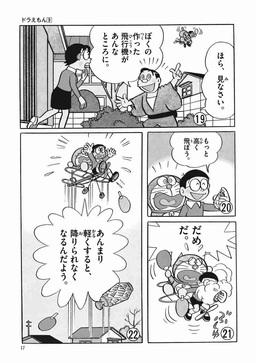 9巻では、1969年度生まれの小学生が6年間で出会った全73作品を収録しました(『小学一年生』1976年4月号~『小学六年生』1982年3月号まで)。 700ページを超える超ボリュームで、愉快な「ドラえもん」を存分にお楽しみください。 登場するひみつ道具を見るだけでも、わくわくしてしまいそう! ふんわりガス、とりよせつぼ、空手ドリンク、ミニたいふう、かたづけラッカー、ロボット雪だるま、時間貯金箱、四次元ポケット、ふみきりセット、ウルトラよろい、あらかじめ日記、空想レンズ、デラックスライト、たからさがしカウンター、クモノイトン、モノモース、百苦タイマー、テレパスロボット、むりやりトレパン、ひい木、季節カンヅメ、アスレチックハウス、ありがたみわかり機、百万ボルトひとみ、実物立体日光写真、初日の出セット、空気ブロックせいぞう機など。