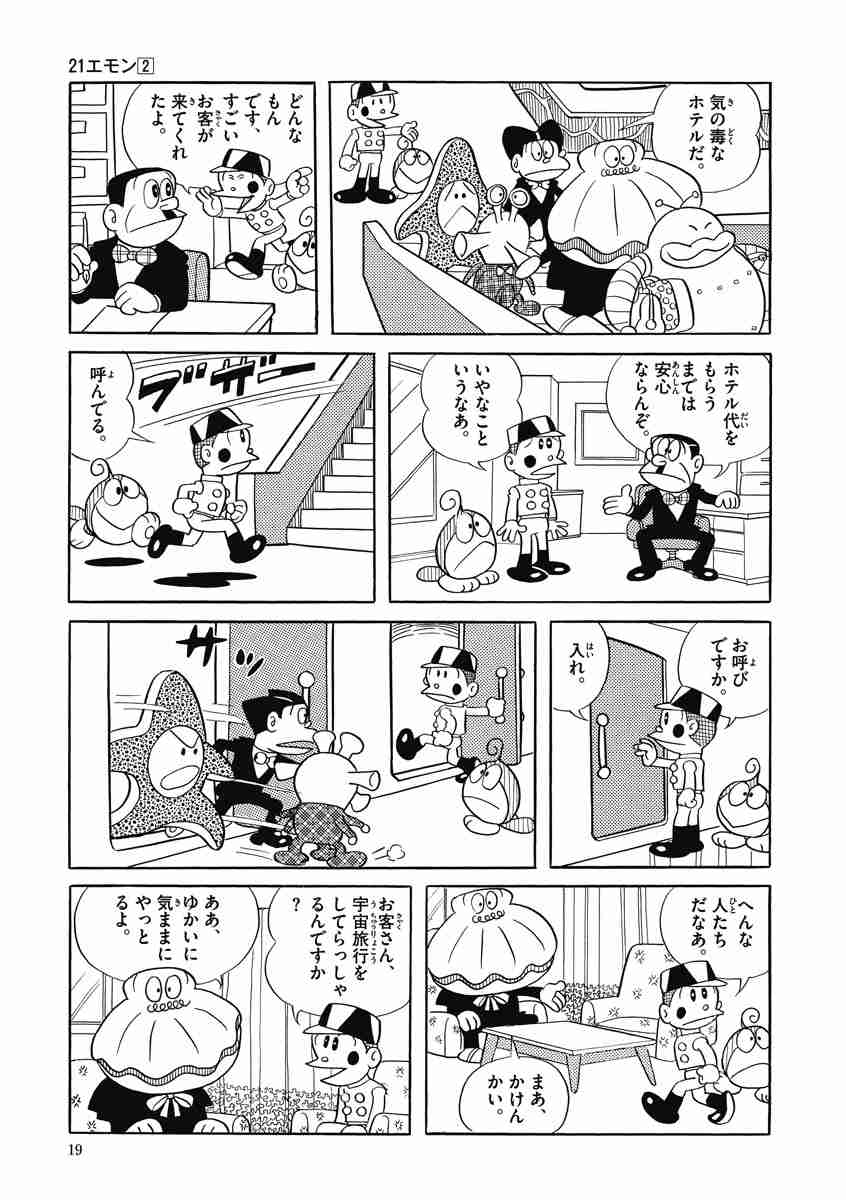 超スケールで宇宙の果てまで大冒険!! 今にもつぶれそうなオンボロホテル「つづれ屋」の21代目となる少年・21エモン。悲願の夢だった大宇宙への旅をついに実現。度重なる困難にも負けないで自由な宇宙で思いっきり大活躍をする。広大な宇宙への夢を、絶妙な笑いとともに大きく大きくふくらませる大傑作、いよいよ完結!! 「21エモン」の作中でも活躍する宇宙生物・モンガーを主人公にした『モンガーちゃん』もオールカラーで単行本初収録しました。