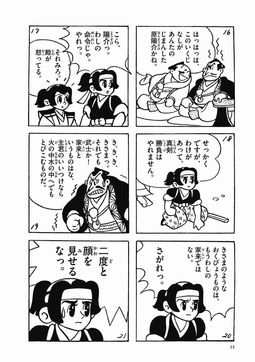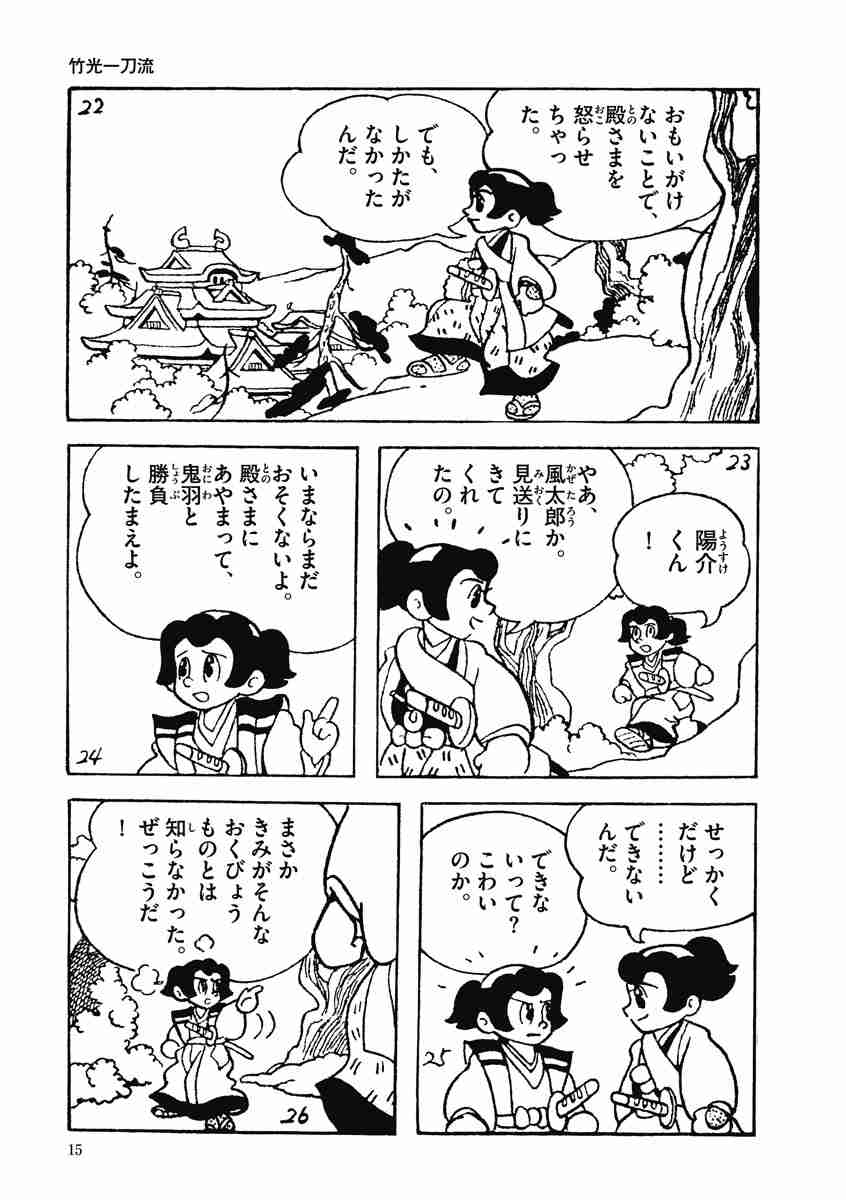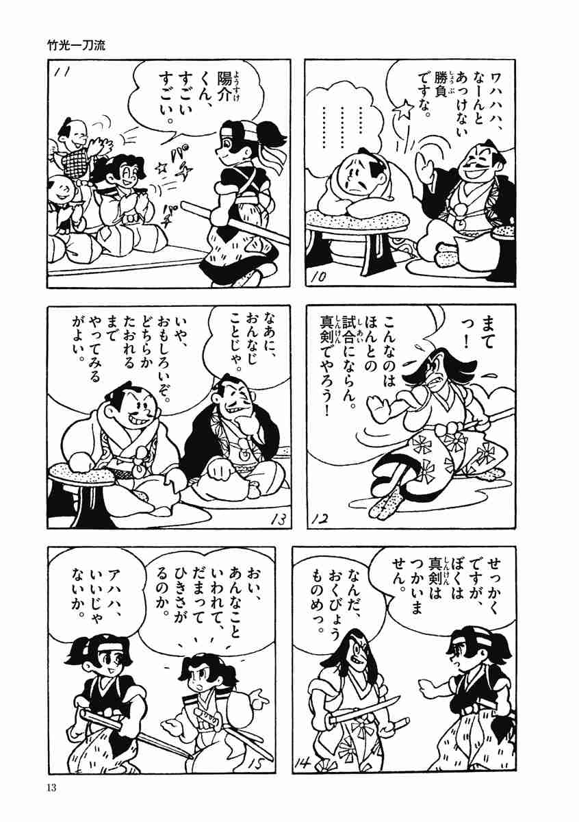 切れ味鋭い短編の技!珠玉の時代作品集! 昭和30年代の少年たちに大人気を博した時代劇漫画を一挙集成! 痛快なチャンバラアクションのみならず、藤子・F・不二雄ならではの練り込まれたストーリー展開は。後の「少年SF短編」も彷彿とさせ、読み応え満点! 『漫画王』付録として発表された「竹光一刀流」「山びこ剣士」(前/後編)「海の快剣士」「電光豆剣士」「かげろう剣士」と、本誌に発表された「宝さがし武勇伝」の前6作品を収録。(解説/よこたとくお)