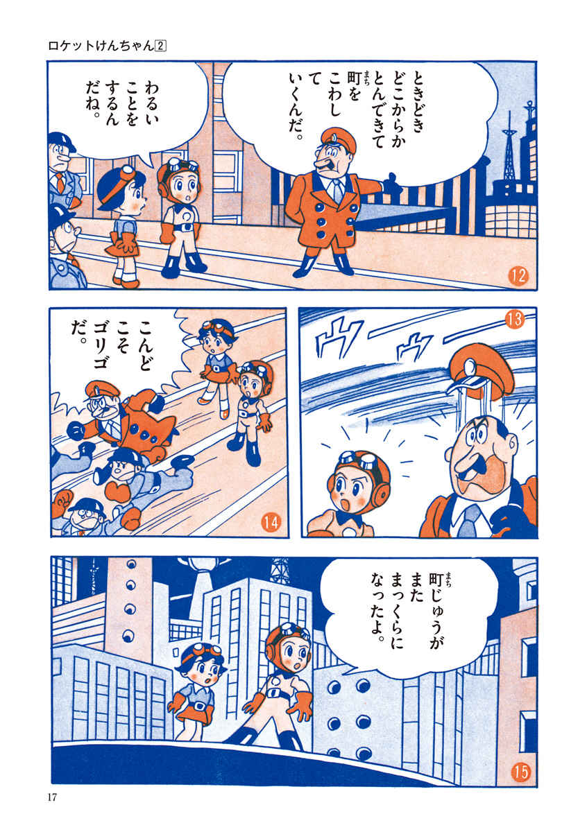 よりSF的&ダイナミックに進化した小二版 連載誌が『小学二年生』に繰り上がる第2巻は、巨大ロボットや謎の怪人といったパワフルな悪者がおお暴れ!原作に久米みのるを迎え、SF色も格段にアップ! 少し成長したけんちゃんたちの智恵と勇気を振りしぼったバトルをお見逃しなく。
