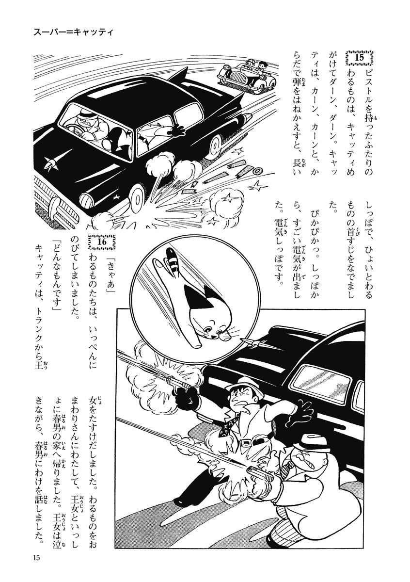 初登場の”絵物語”と唯一の連載西部劇 往年の少年雑誌で一世を風靡した”絵物語”がF全集に初登場!遠い星からやって来たヒーロー猫の活躍を描いた絵物語「スーパーキャッティ」(文/久米みのる)に加え、江戸川乱歩書き下ろし原作の「かいじん二十めんそう」も収録。さらに西部を舞台にした痛快アクションまんが「かけろセントール」も楽しめるお得な1冊! (解説/加藤丈夫)