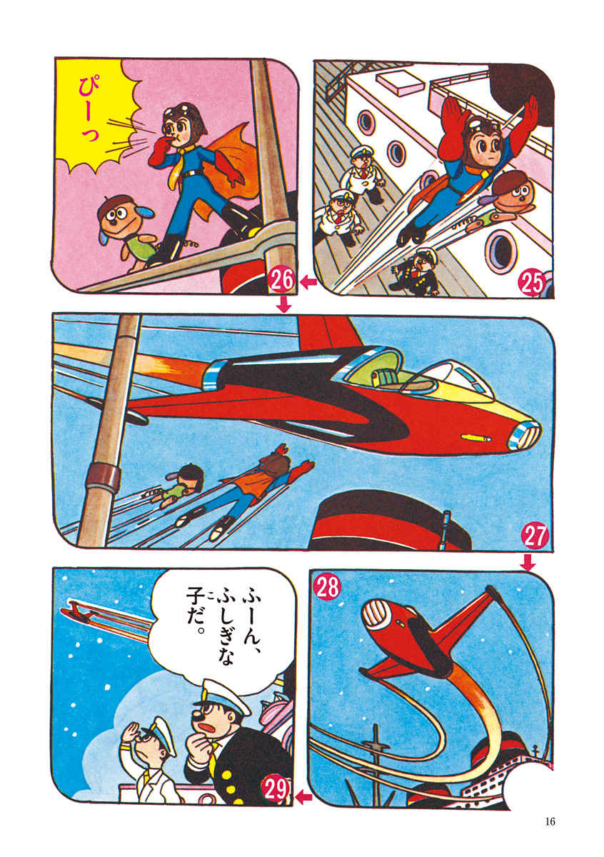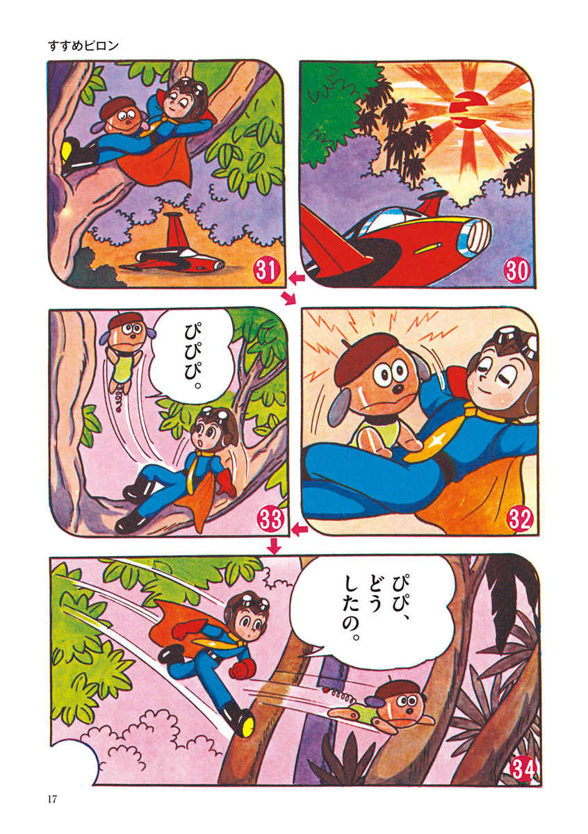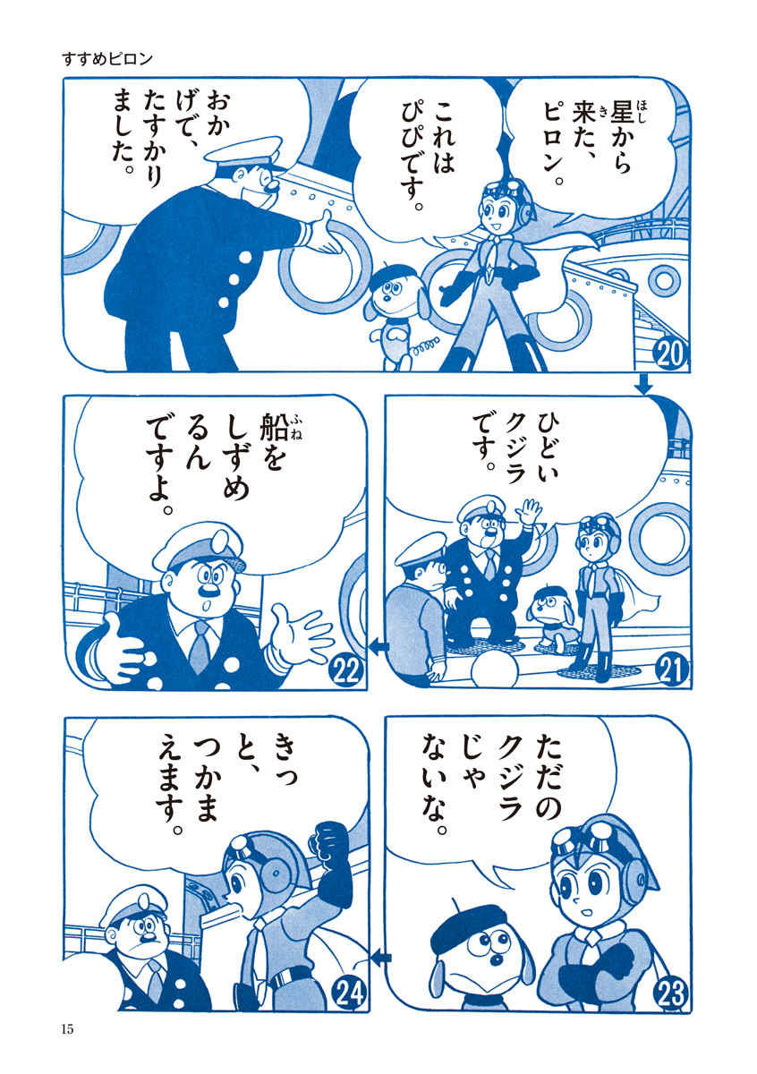 真っ赤なマントで飛び回るFヒーローの原点 小学館の学年誌『小学一年生』で「ロケットけんちゃん」の翌年に連載された初期SFヒーロー作品。星からやって来た少年ピロンが不思議な力を使って次々と悪者をやっつけます。キュートな相棒、ぴぴの能力にも注目!(解説/板井れんたろう)