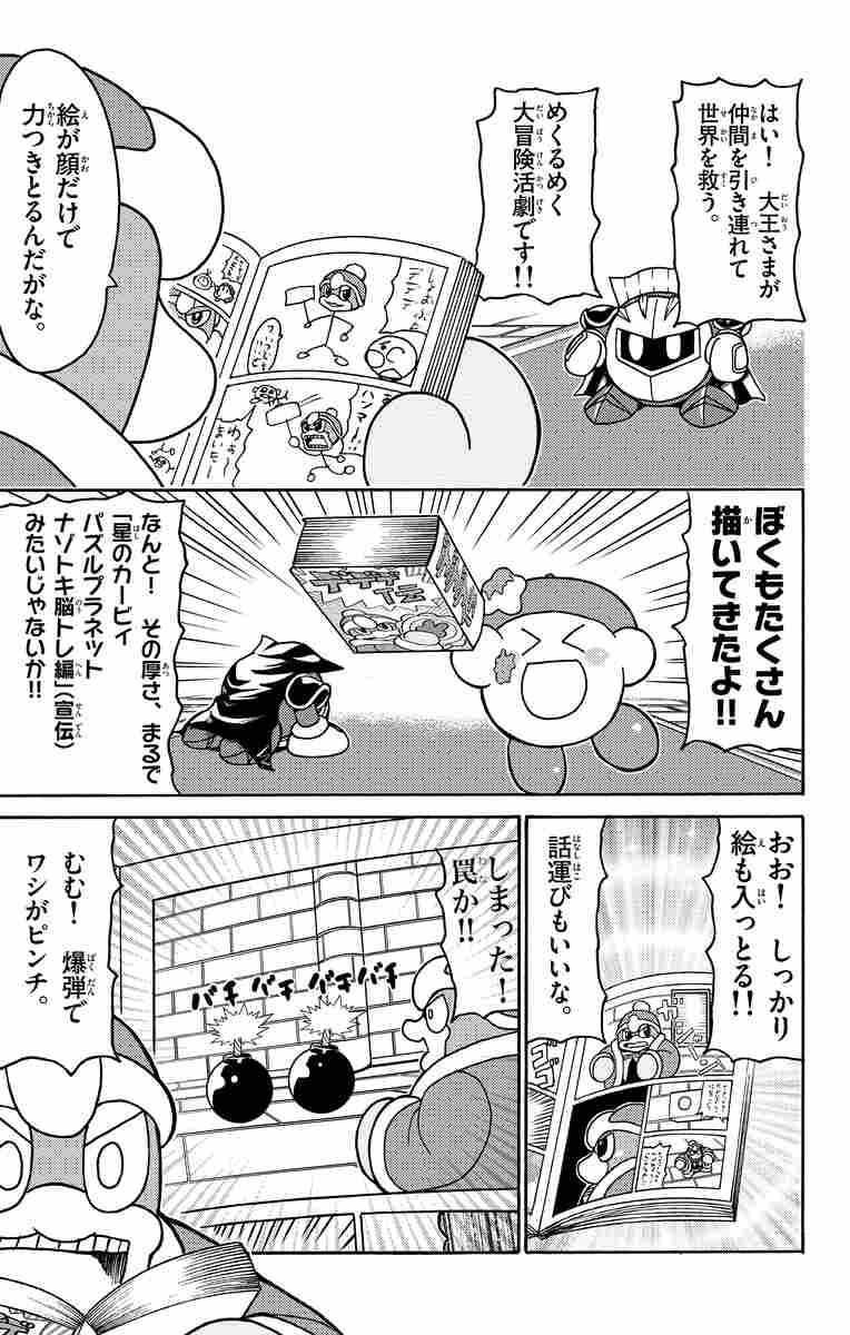 発見!新しいカービィまんがのカ・タ・チ! 30周年を迎え、さらに人気が加速するカービィ人気! 『星のカービィ ディスカバリー』に登場する、ほおばりヘンケイや、進化するコピー能力などのネタがてんこもり! ほとばしるカービィ愛! ちょっとクセ強ツッコミ! 1ページでも読んだら、止まらなくなる面白さ! SNSでもじわじわ話題沸騰中の、”ダイナミック”なカービィまんがは、コチラです!