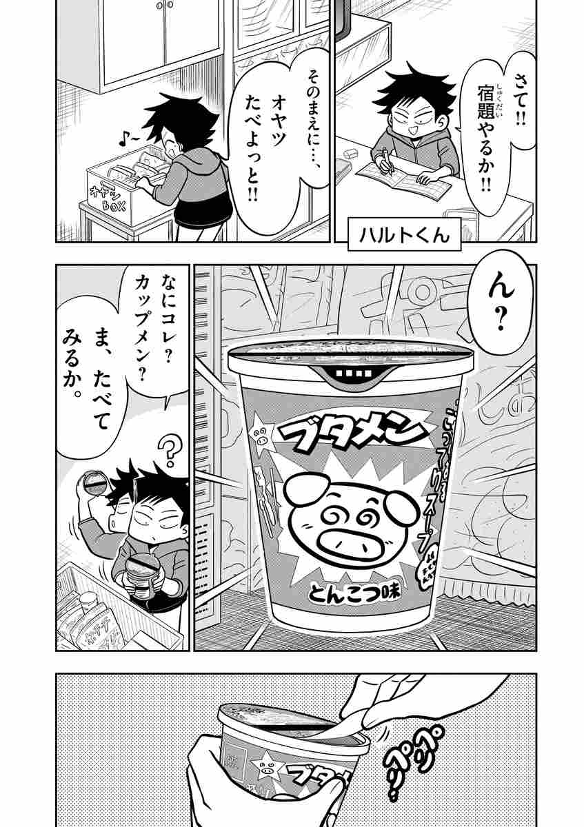 駄菓子ミニカップ麺ブタメンがまんがに! 大人気駄菓子ミニカップ麺のド定番ブタメンが