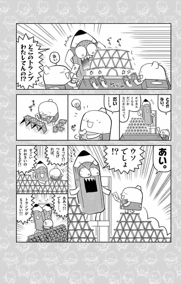 いつも元気でちょっぴり(?)わがままなチビカスくん。楽しい遊びが大好きで、色んなことに興味津々でついついあばれてしまうことも、、、。相棒のえんぴつくんはいつも優しいけど、チビカスくんの自由ぶりに困ってしまうこともしばしば。でもふたりは結局仲良しだからいつもいっしょにいます。