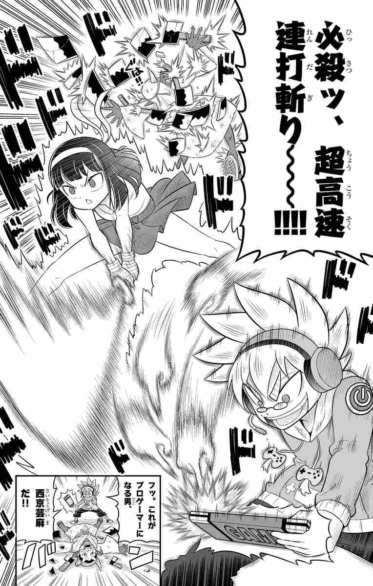 プロゲーマーを目指す西京芸麻と妖怪退治屋の刀堂巫女のタッグがとにかく熱い! 彼らの前に現れたのは、巫女の妖怪退治屋を認めない、最強退治屋として名高い巫女の兄・刀堂神。立ち塞がる「最強」を前に、芸麻はどう攻略する─。