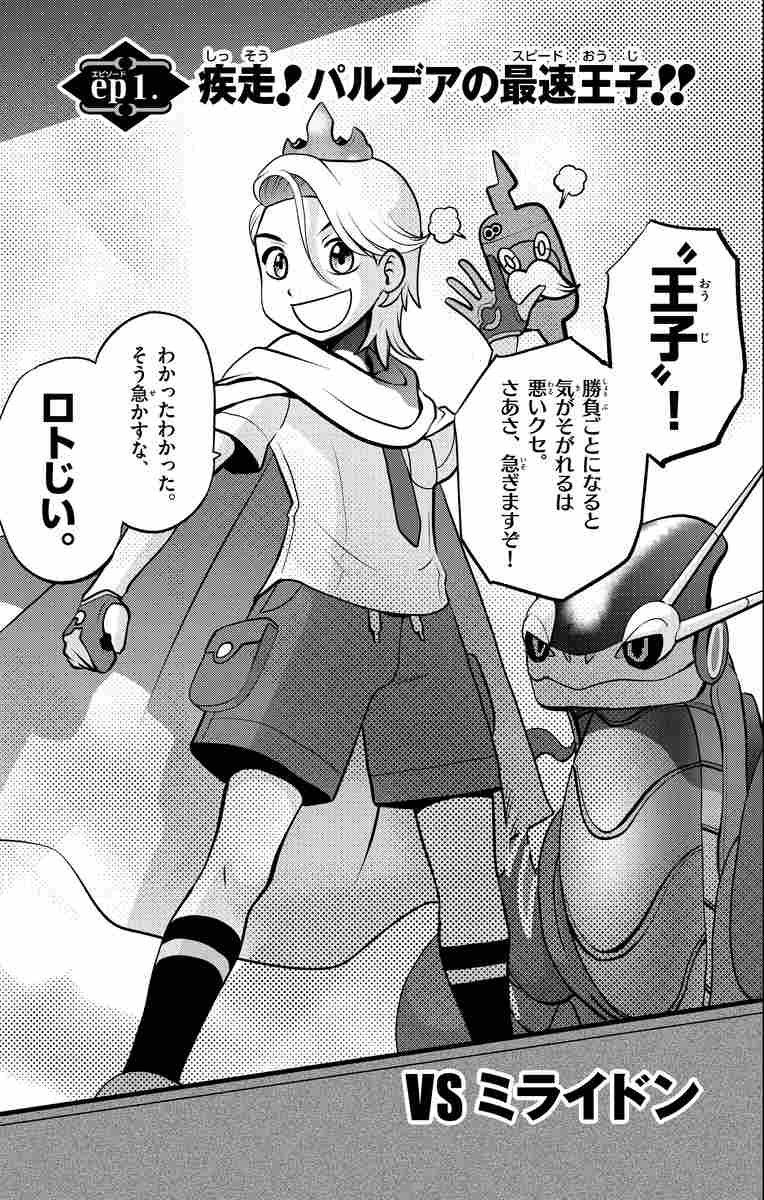 “スピード王子”、パルデア地方を駆ける! ミライドンを駆る“スピード王子”バイオレットが、ミライドンの能力を取り戻すべく「秘伝スパイス」を求めてパルデア地方を駆けめぐる! ヌシポケモンとの対決! スターダスト作戦! そしてもう一人の主人公は…!?