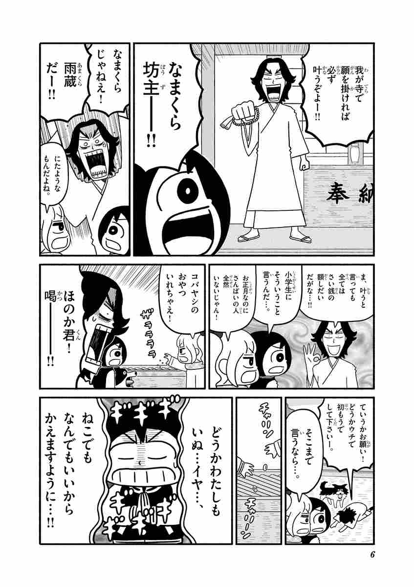 デカくてかわいいネコのまんがです。 犬やねこを飼いたいと思っている女の子:アンちゃん。お寺で願ったら、運命の出会いが…!?不思議なねこ:オモちゃんとの楽しい日々を描く、ふっくらハートフルねこコメディー!