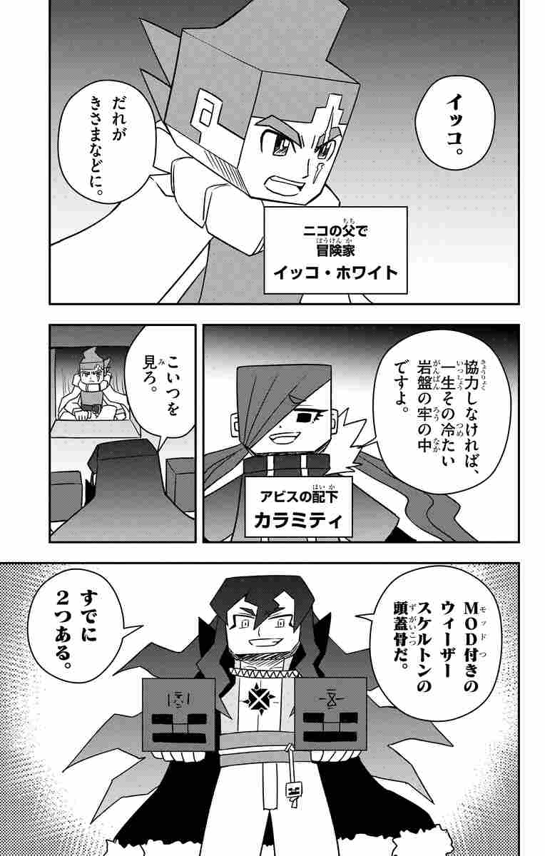 父ちゃんを取り返せ! 「MINECRAFT」の世界の果てを目指している少年・ニコ。追いかけ続けた父と再会するものの、世界を破壊しようとする男・アビスの手にかかり捕らわれてしまう!