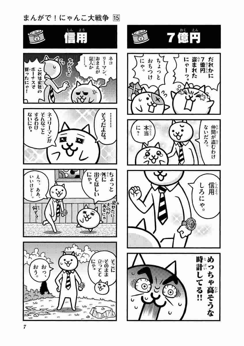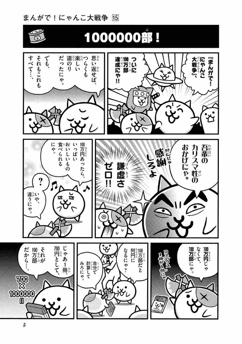 累計111万部突破!! ダウンロード数9500万越えの超人気アプリゲーム「にゃんこ大戦争」を、コロコロギャグの鬼才・萬屋不死身之介先生が描くシリーズ15巻です! 第15巻も、描き下ろしのあとがきに加え、コロコロオンラインのみ限定公開されたまんがも収録された豪華な一冊となっています!